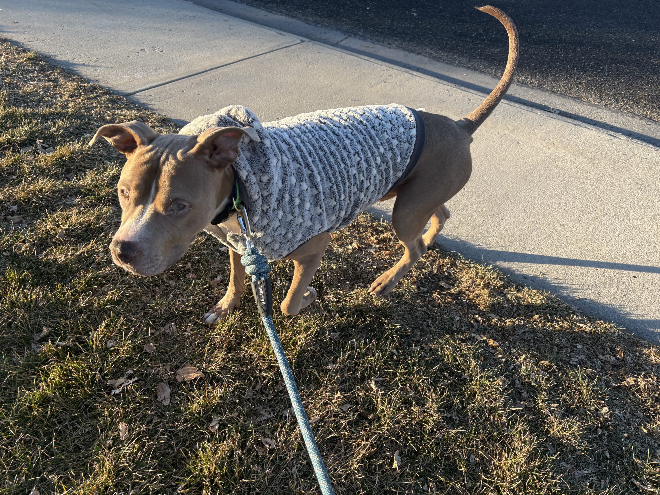 Alfred is a smart, communicative guy who lets you know when he needs to go out by heading straight to the door. He walks beautifully on leash and looks forward to his morning and evening strolls, soaking up the world one step at a time. His foster family notes that although he does not have puppy energy, he enjoys getting exercise every day. He likes other dogs and is friendly when playing with other dogs.