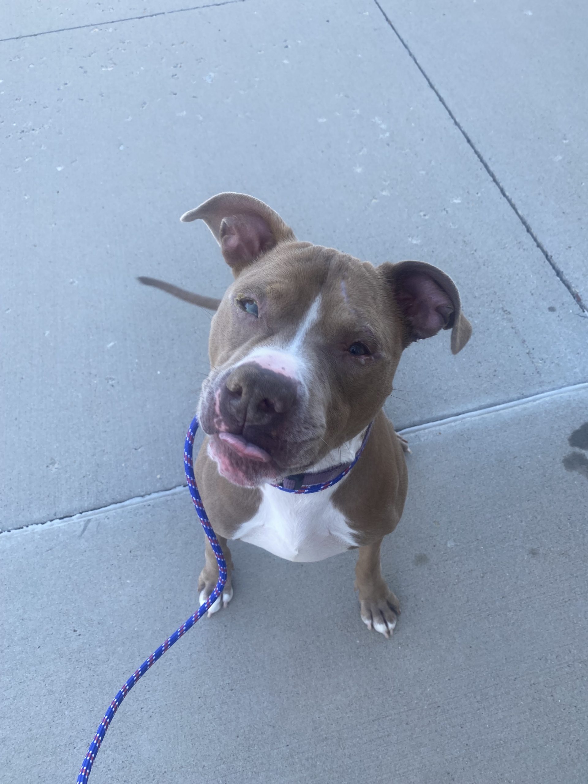 Alfred is a sweet middle-aged pittie mix. He's so full of love for the people around him and just overall the best boy who doesn't quite remember his size when he wants love from his people! Alfred is working on his leash walking skills, already mastered "sit" and "down" and loves being able to get out and explore.
