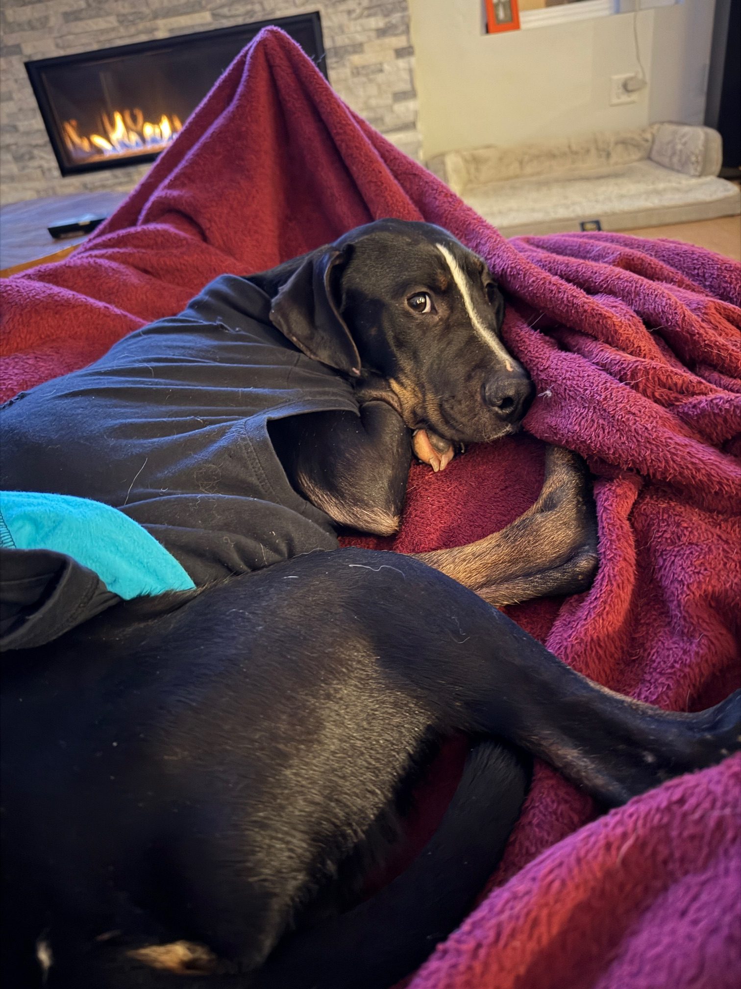 Sweetest Autumn was found extremely emaciated and with a fractured left front limb requiring amputation. She has recovered amazingly well and steals the hearts of all who meet her! She LOVES playing and interacting with other dogs and enjoys spending time with her humans. She is a smaller size dog with big dog energy (she wrestles/plays with huskies in her foster home). She is currently in training at her foster home learning basic commands - she is super smart and eager to learn! Her ideal home would be willing to give her lots of cuddles, have at least one other dog, and give her activity (playing with other dogs or regular walks). Apply if interested in meeting Autumn!