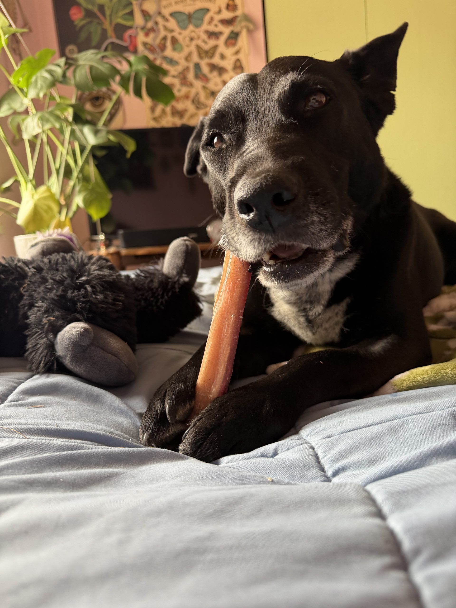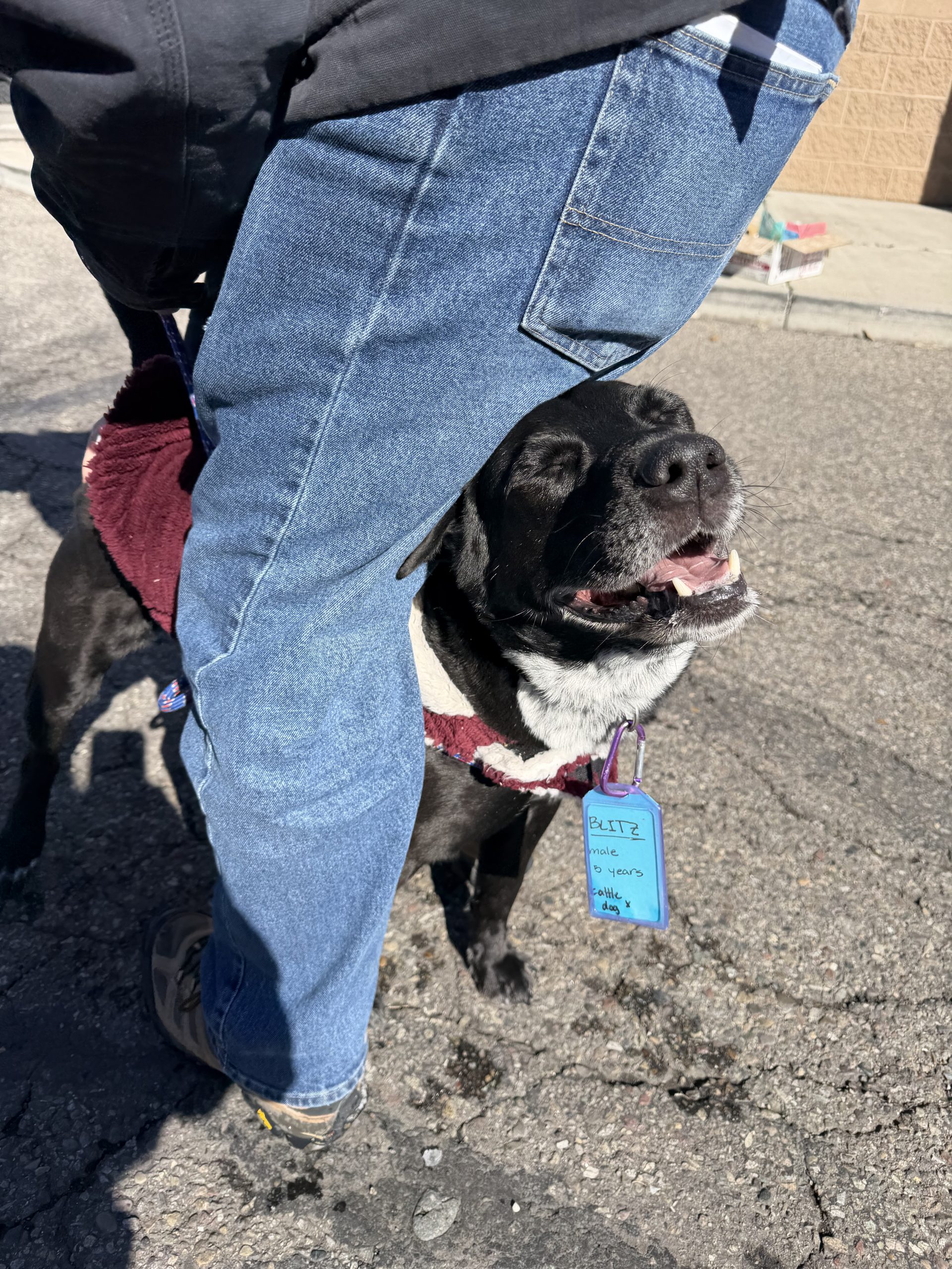 Hi! My name is Blitz and I'm super pumped to be here. I’m a medium energy boy who loves to adventure but also likes my leisure time. I’m up for whatever you are! I like to play when you want to play, and chill when you want to chill. I'm quite the loverboy and can't wait to soak up all the attention from you and anyone else around you. I'm also very smart - I seem to have known quite a few tricks before I was found and can't wait for the chance to refresh them. I'd love a semi-active family with other dogs and kiddos or even a medium energy person or couple who like a good balance between adventure and rest. I love all dogs and seem to have a playful curiosity with cats and farm animals. I also love all humans including kiddos.
