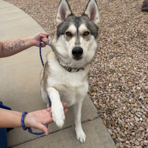 I'll be honest with you, I am still perfecting my manners at the moment, but I'm learning quick! I get really excited when friends visit me at the shelter because it has been SO BORING!  I've got the classic husky charm: a little mischievous, a lot of fun, and a sassy howl. I cannot wait to absolutely thrive and blossom in your house alongside you, and maybe go for some adventures where I can learn about all the exciting things in the world.