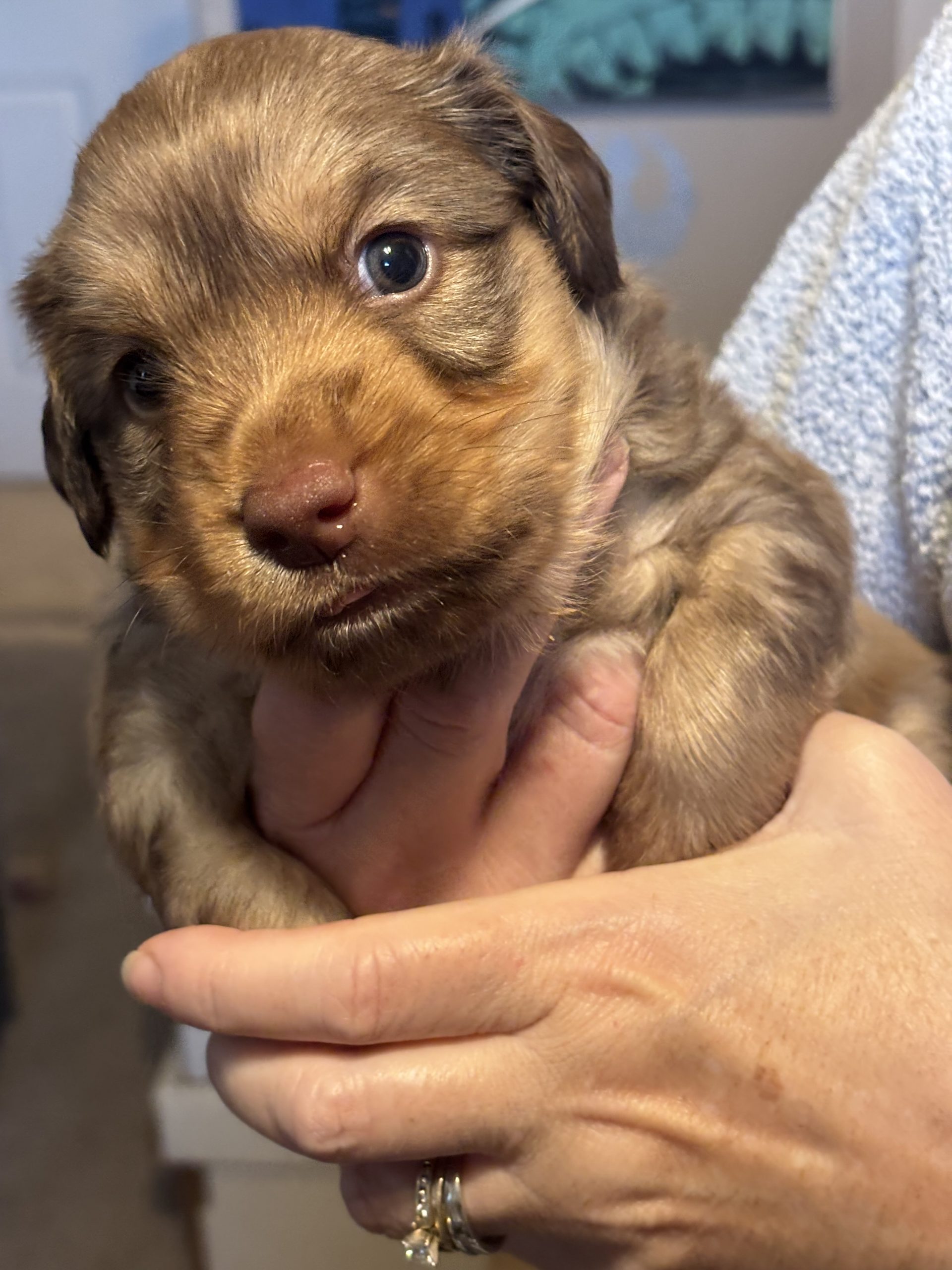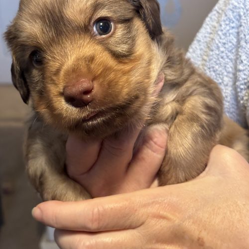 Chai is the sweetest and most snuggly puppy. Even though he is most likely blind he comes to you when you call him, loves to play with his siblings and finds his food and water bowls. He is so worth the extra effort!