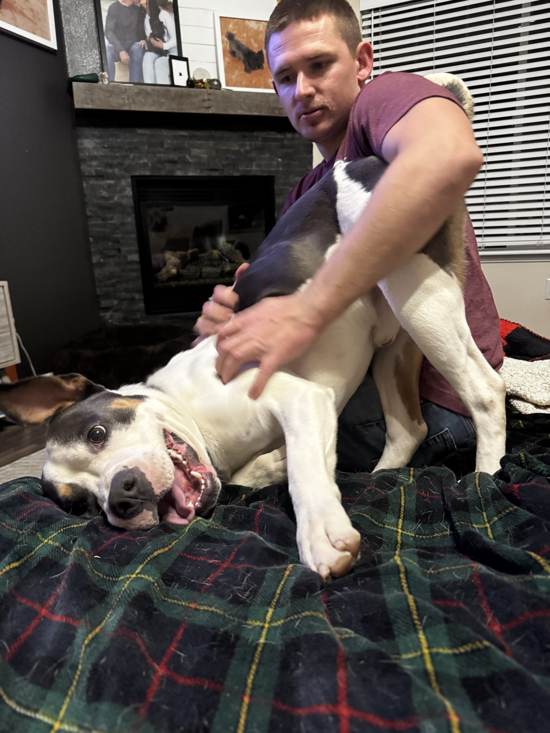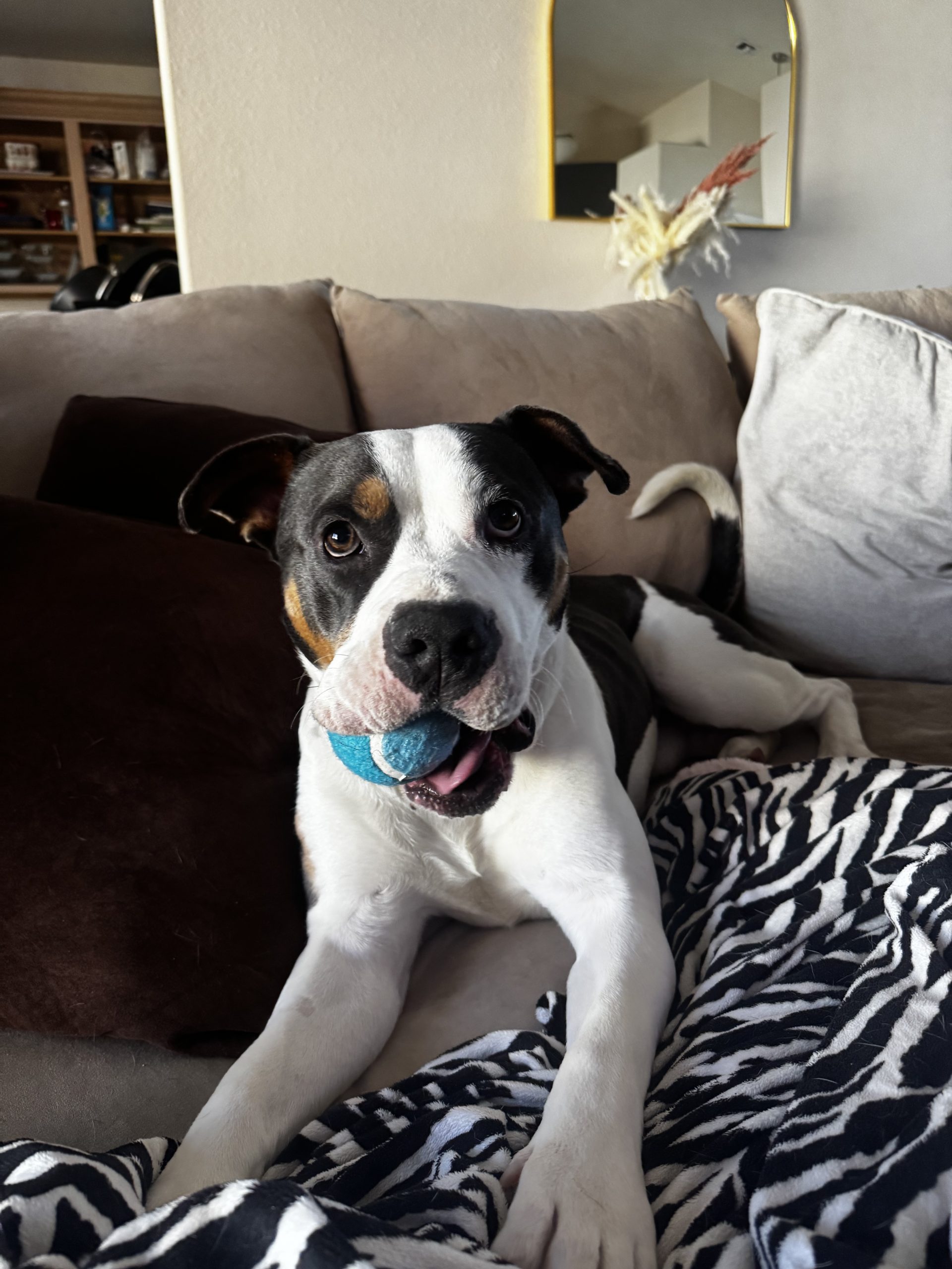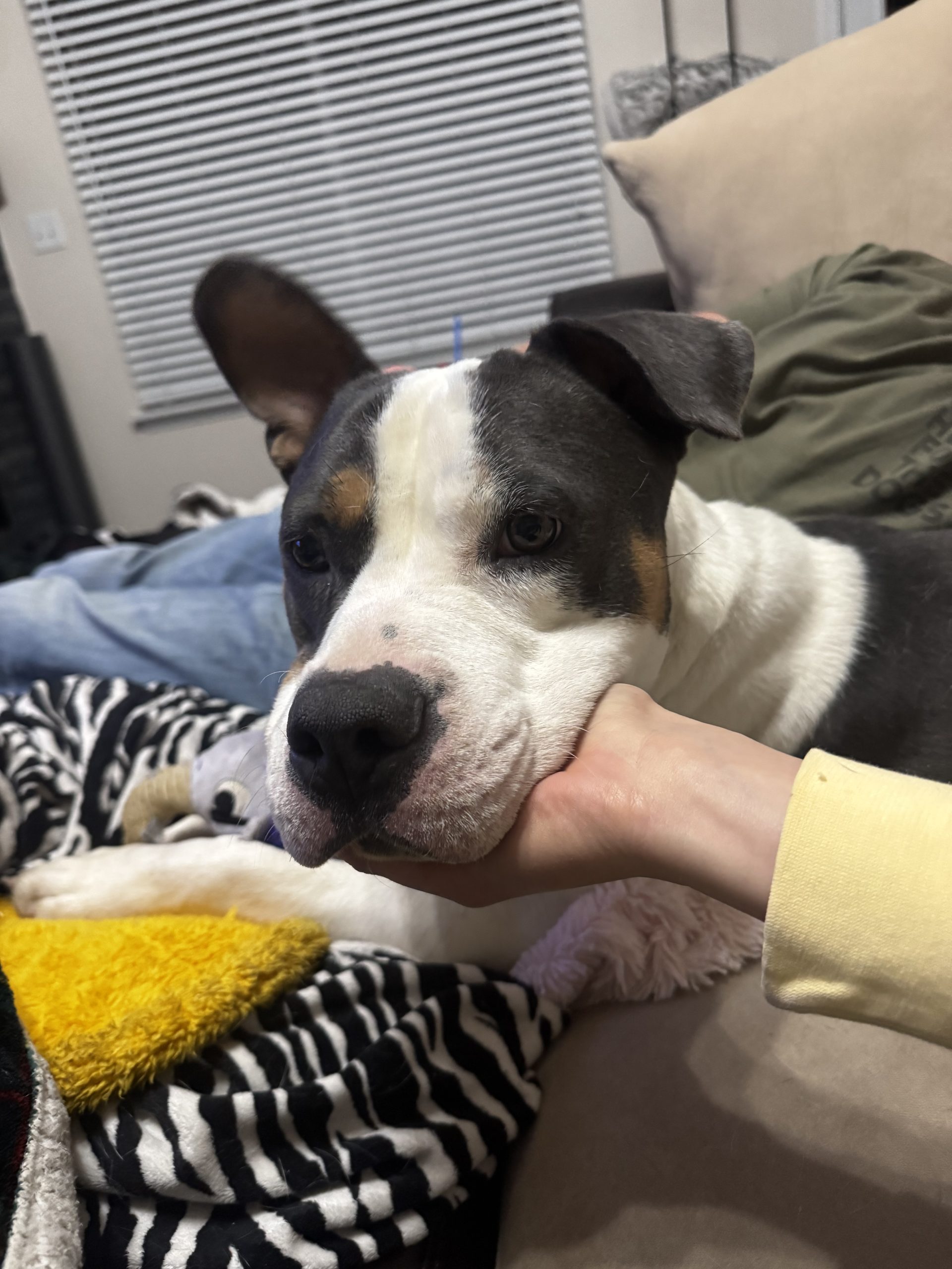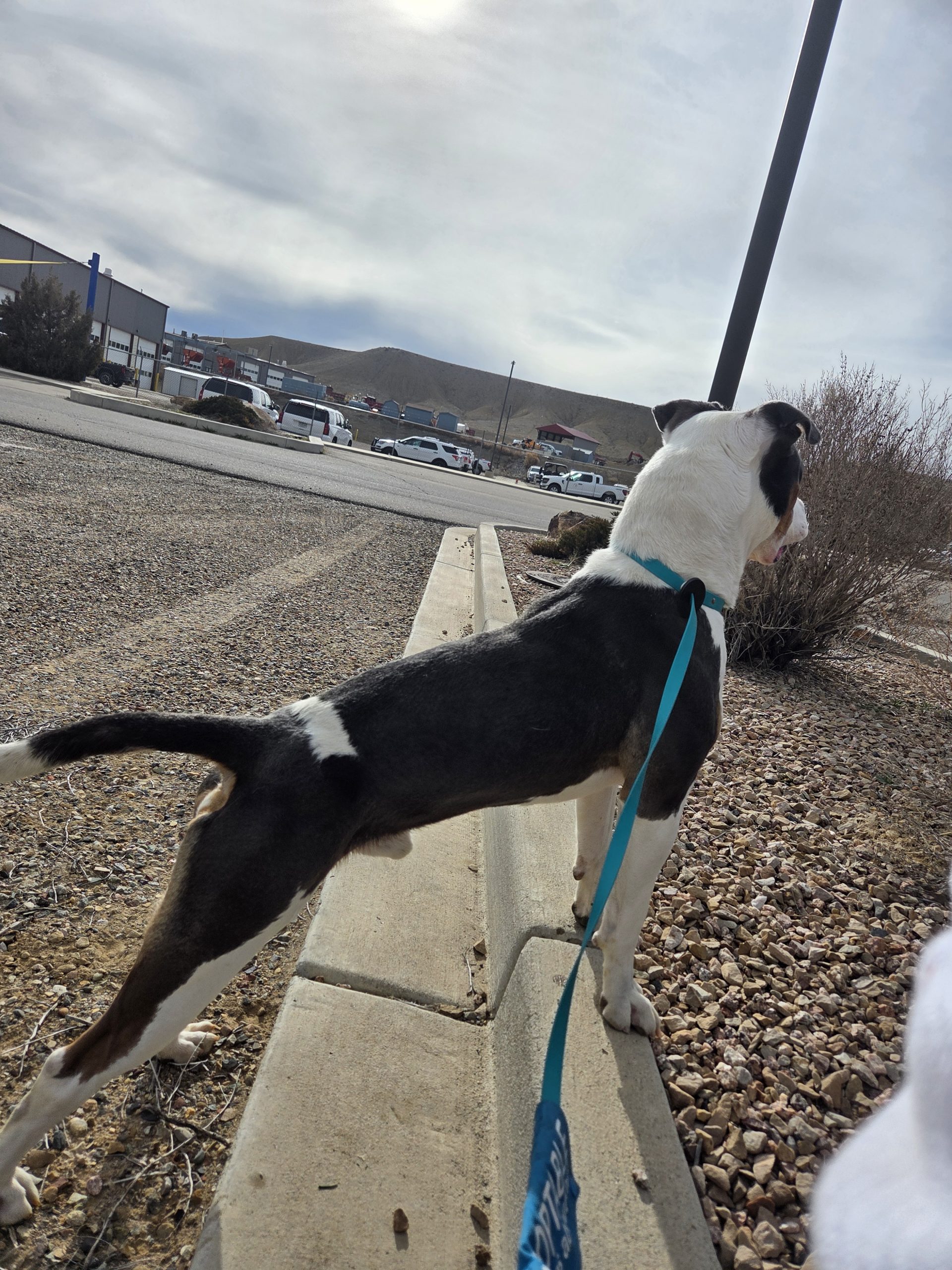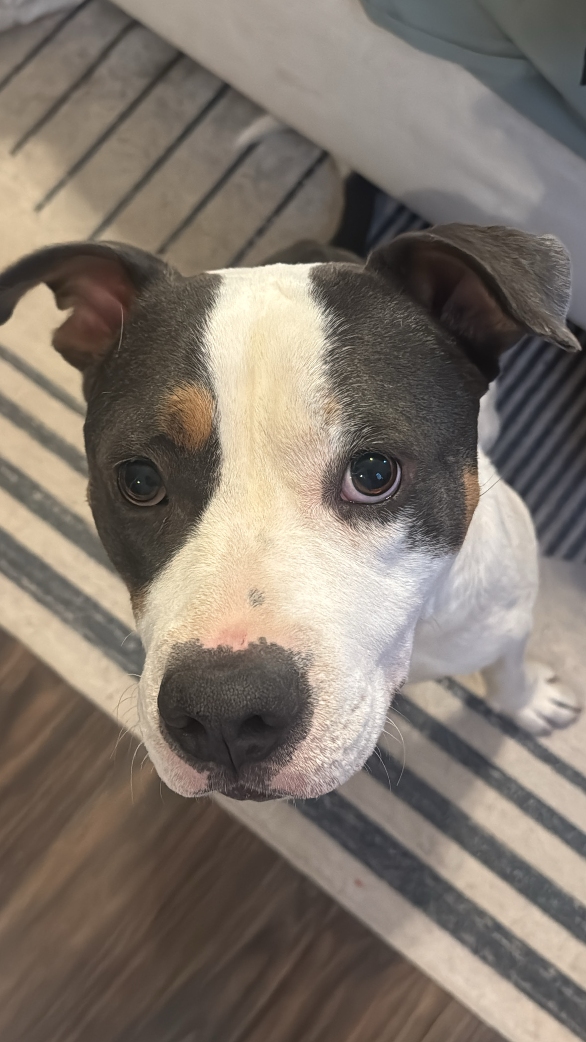 Hello, I'm Dash. I'm a handsome, beefy boy who absolutely loves a good adventure. I may seem like I'm entirely warmed up to you, but I do like to take things slow because I can be a little shy with new situations. I'm coming out of my shell more and more every day. I do just ask that if you come to meet me, you don't lean over me. I'm going to need a strong handler -maybe someone built like me. (GYM BUDDIES?!) because I'm as strong as I look. I would flourish best in a quieter home where I can have a few people central to my world. That doesn't mean with time I wouldn't make a good brewery pal or 5k buddy, I just need some tlc to get there.