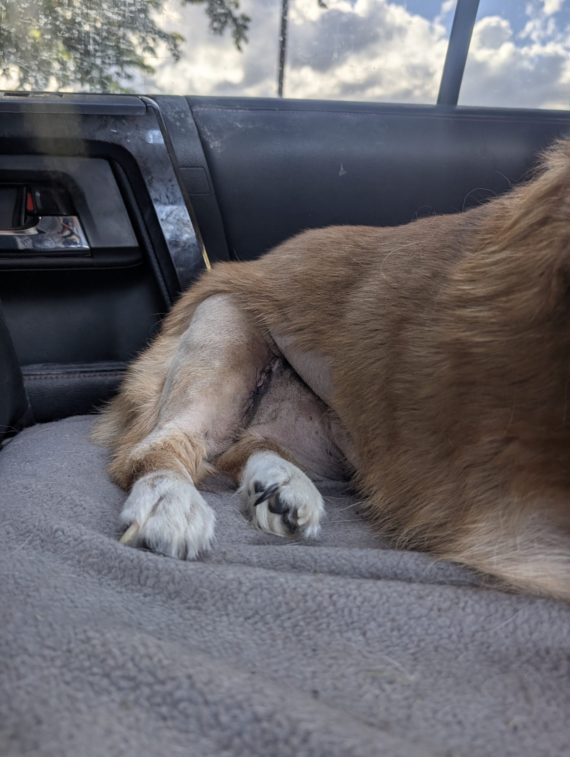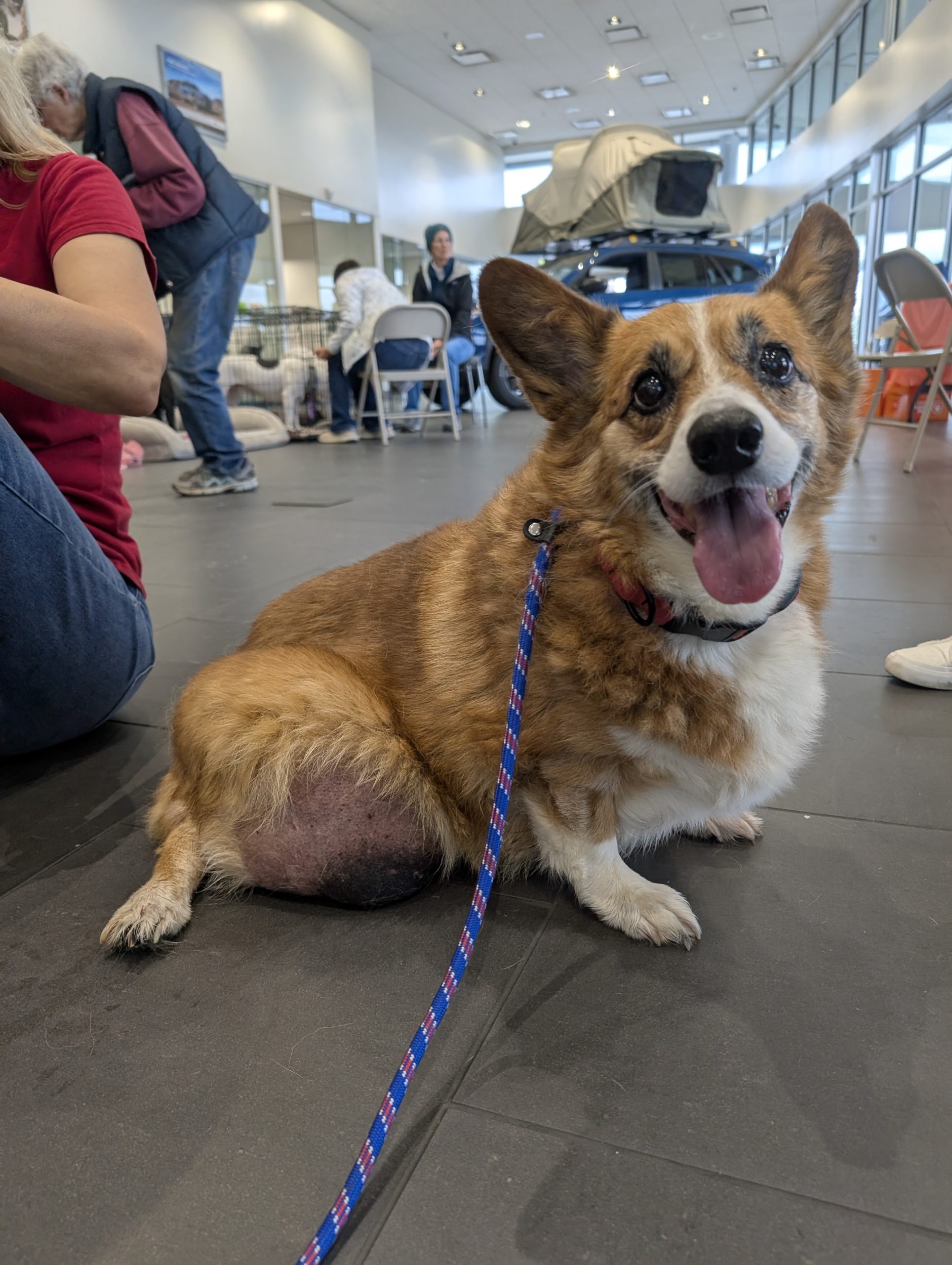 Due to his mom being in hospice care in the end, Felix was unable to get the care he needed to remove a very large mass from his belly, which made it very difficult for him to walk. Luckily it was only a lipoma (fatty benign tumor) and we were able to remove it a couple days after becoming a GRHS pup! He is now recovering in a quiet foster home and learning how to walk again without a GIANT 6 lb mass impeding his short little Corgi legs! Check out his before pictures!
