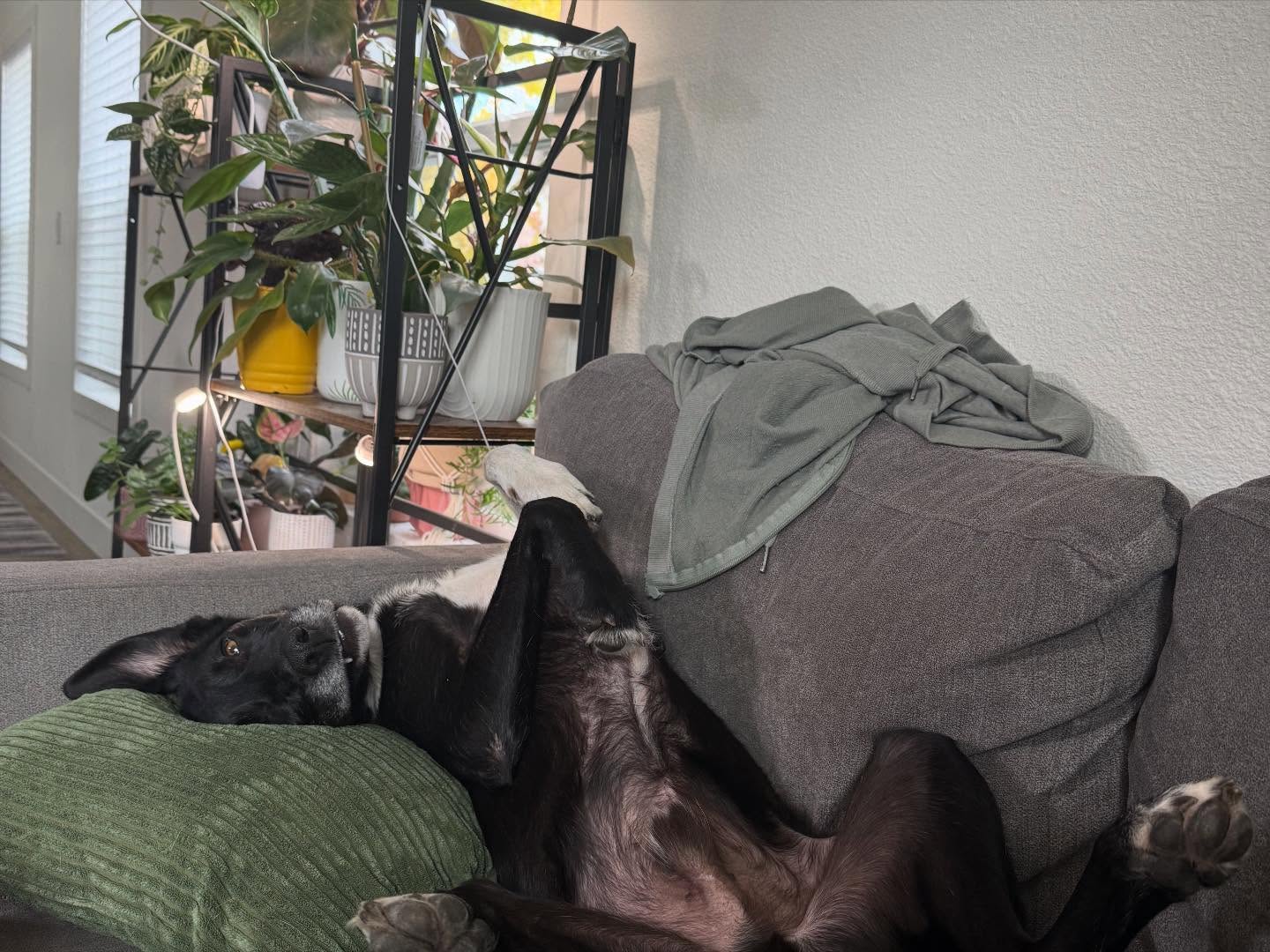 Do you like to match your socks? Not sure Hendrix does as he has a knee high white sock on his left front foot! Friendly, playful and affectionate. He has a calmer personality. He does love to play fetch and play with other dogs. He would love another dog friend to play with in his new home!