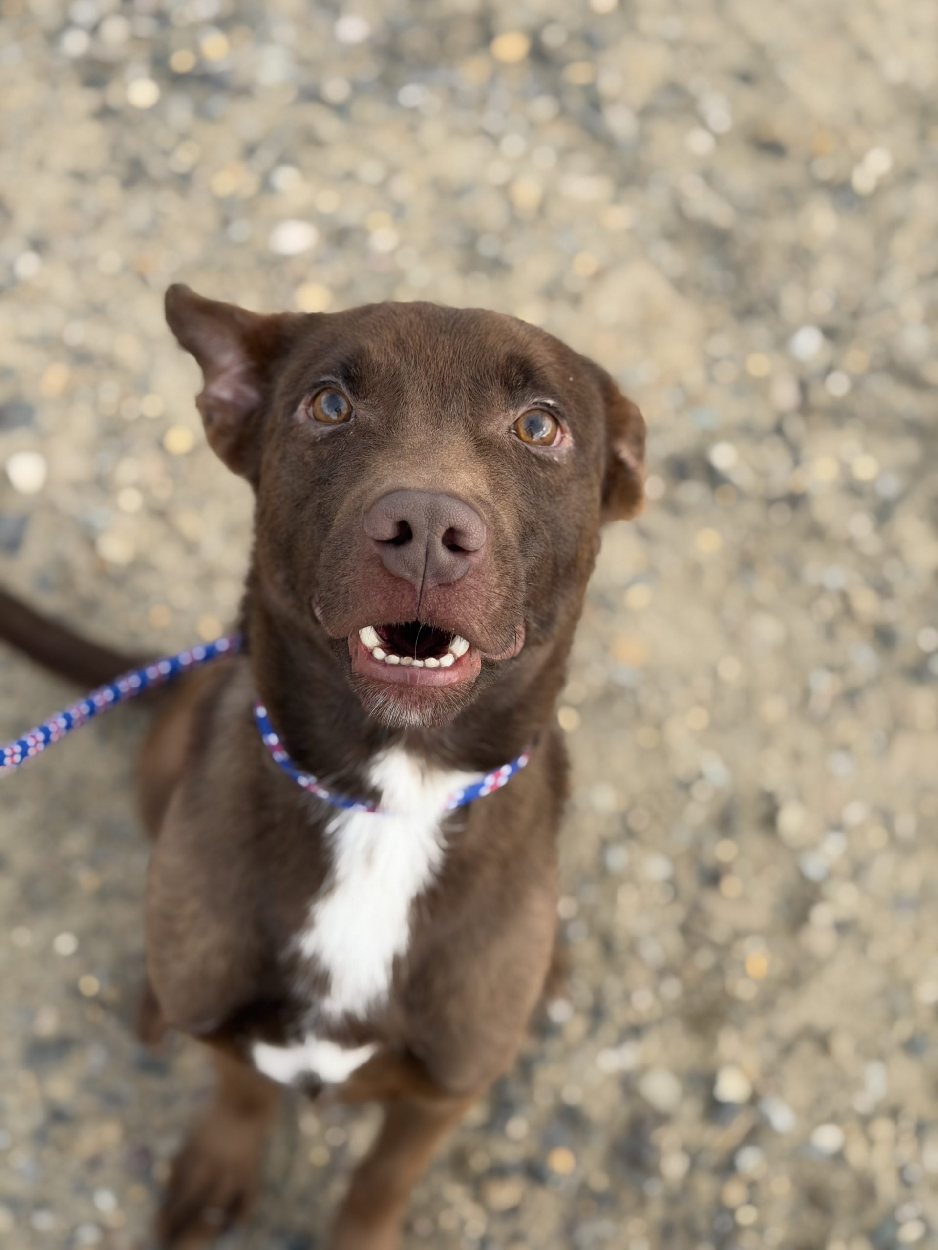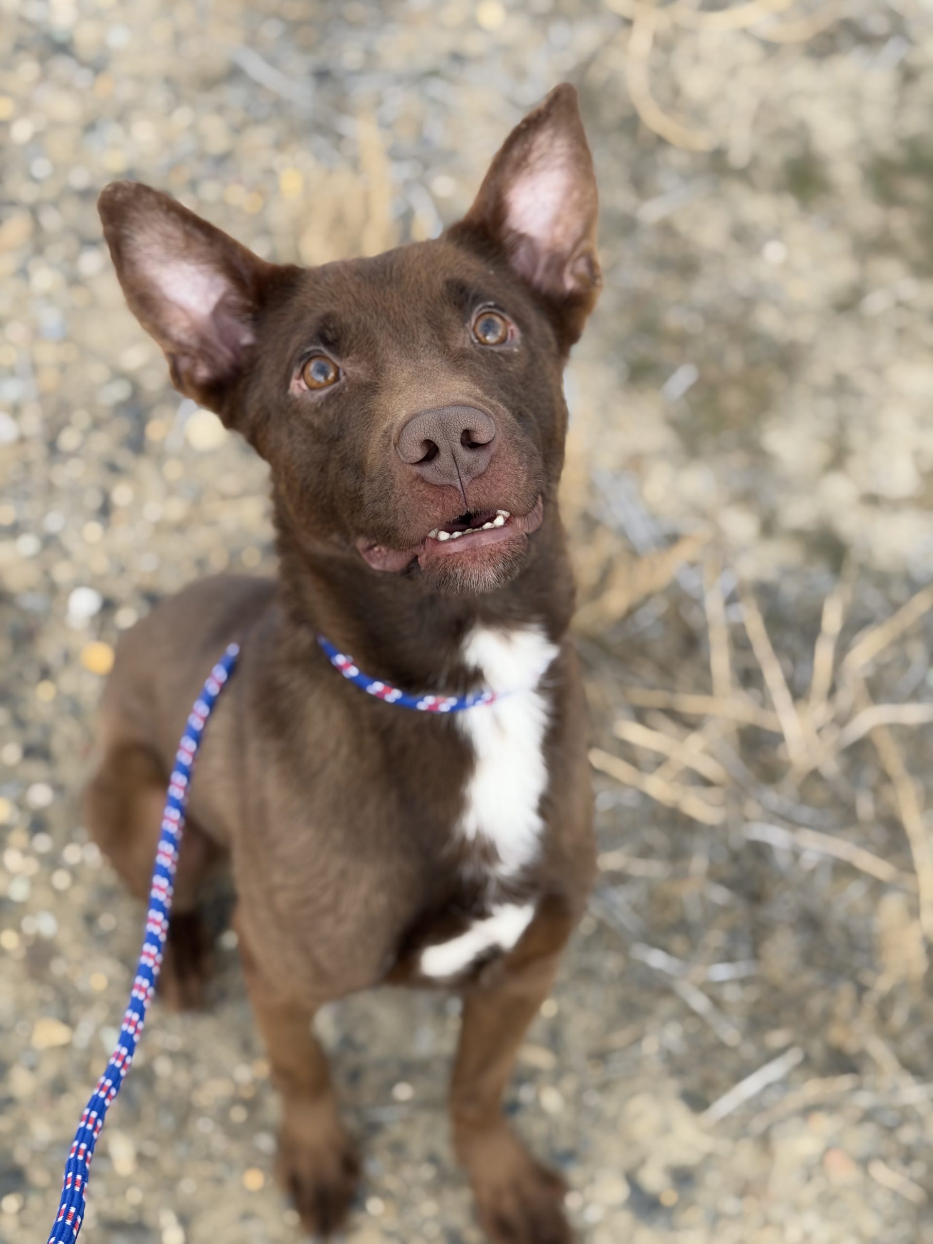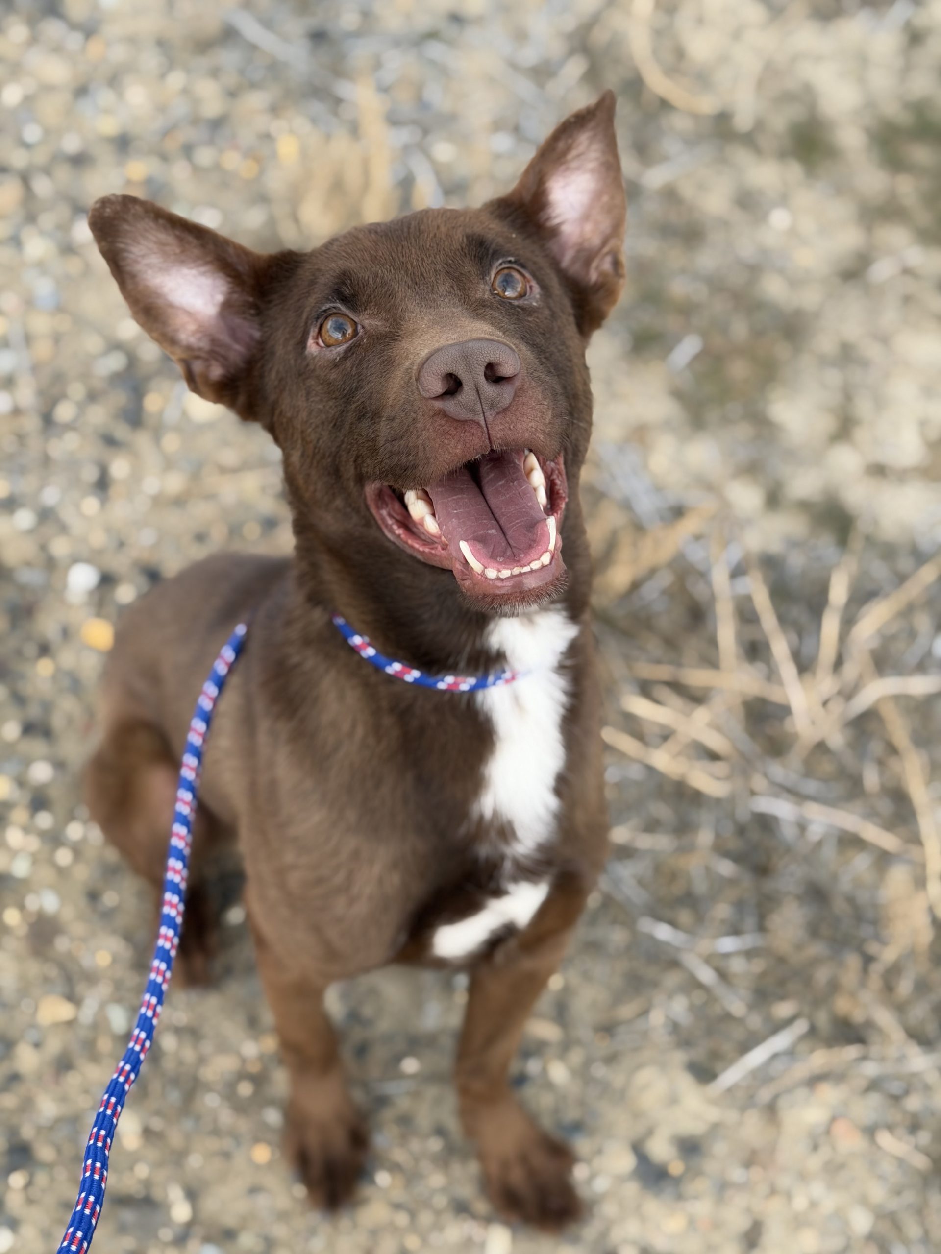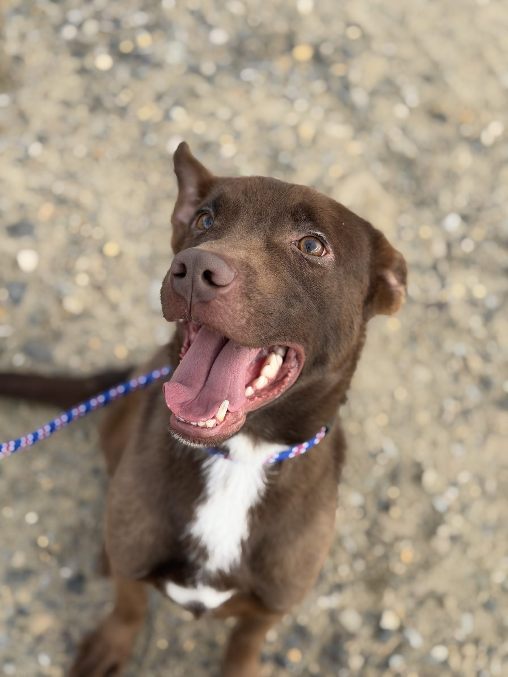 King is such a pure and gentle soul. Like most pups, he loves to go on walks and play but is also so happy to cuddle and receive physical affection. His smile is HUGE and you can’t help but smile too when in his presence. He has a friendly interest in other animals and a gentle demeanor.