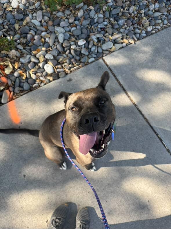 Lander is a handsome pittie mix boy which dark chocolate brown coloring and vibrant eyes. He’s constantly got a big smile on his face! He loves to explore and walks well on the leash. He loves people and is excited to hang out in any setting, whether it’s an adventure or just a movie night at home.