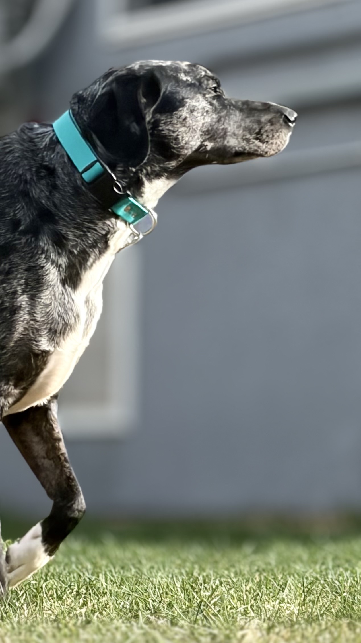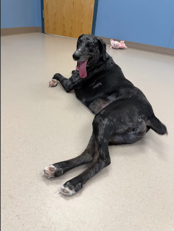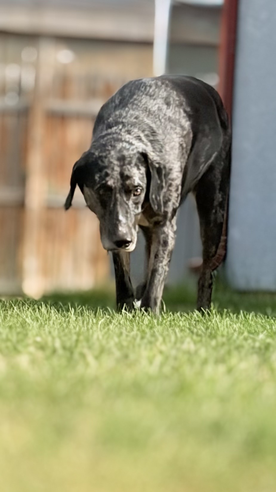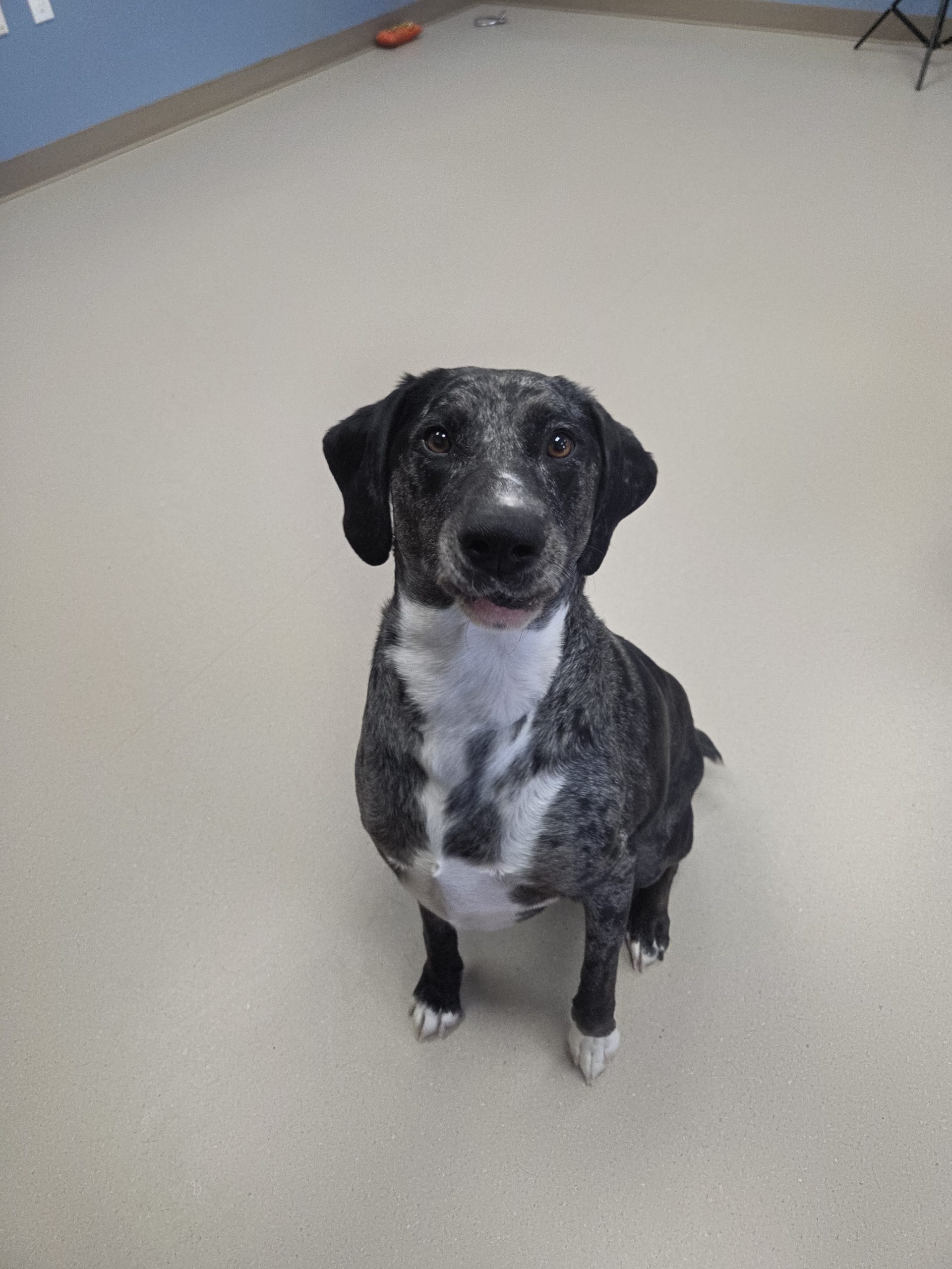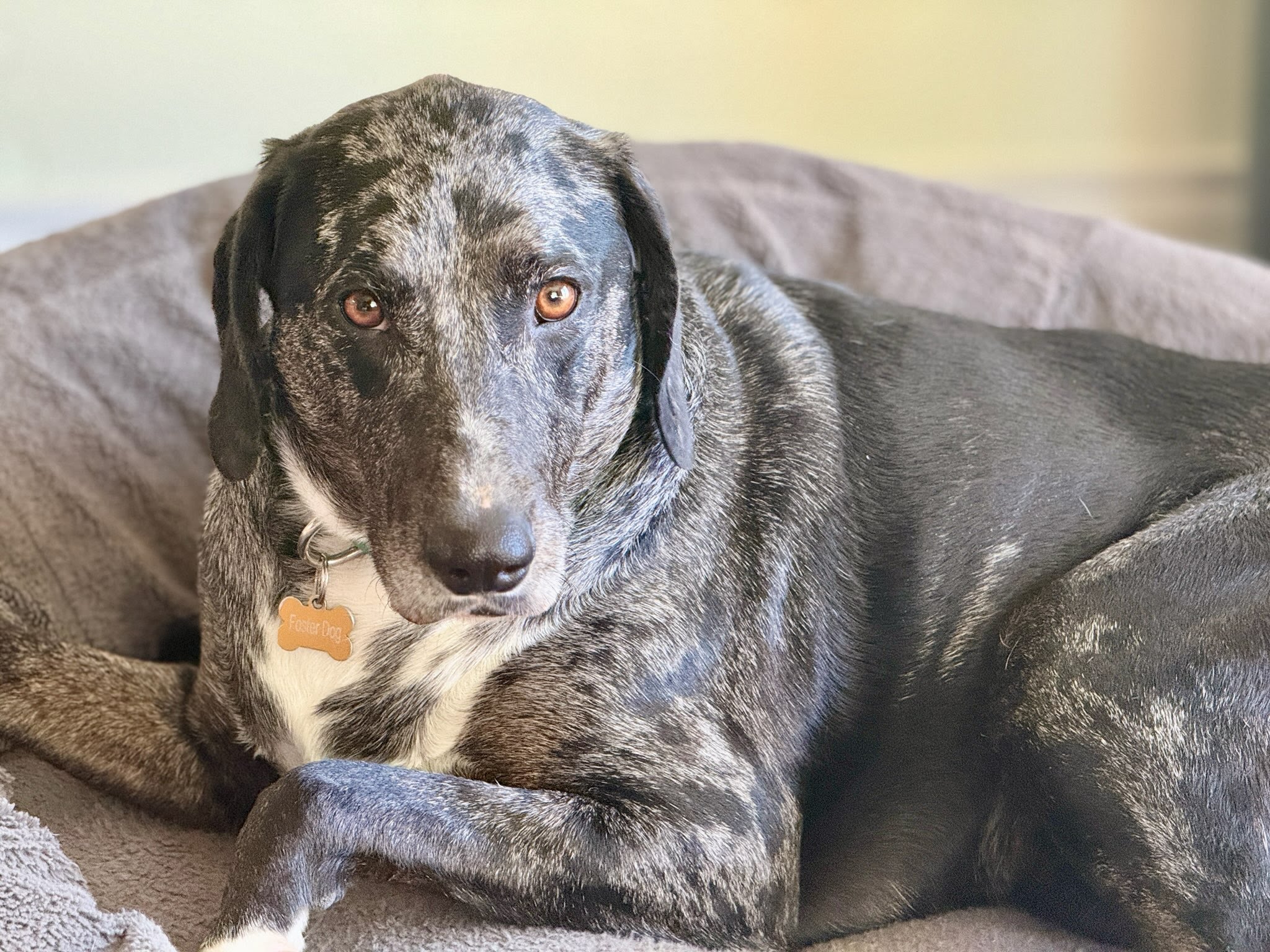 Maggi is the sweet, well mannered, medium energy dog of your dreams. She is 4 years old and a unique mix of Catahoula Leopard/German Pointer/Lab (fosters best guess) with a beautiful spotted short hair coat. Maggi is completely house trained, uses a dog door and loves walks. She doesn’t appear to shed and enjoyed her bath recently. Maggi gets along very well with other dogs, enjoys naps and takes treats with the gentlest mouth. Her favorite spot to hang out during the day is the couch! We think she would make a wonderful family dog for an active family.