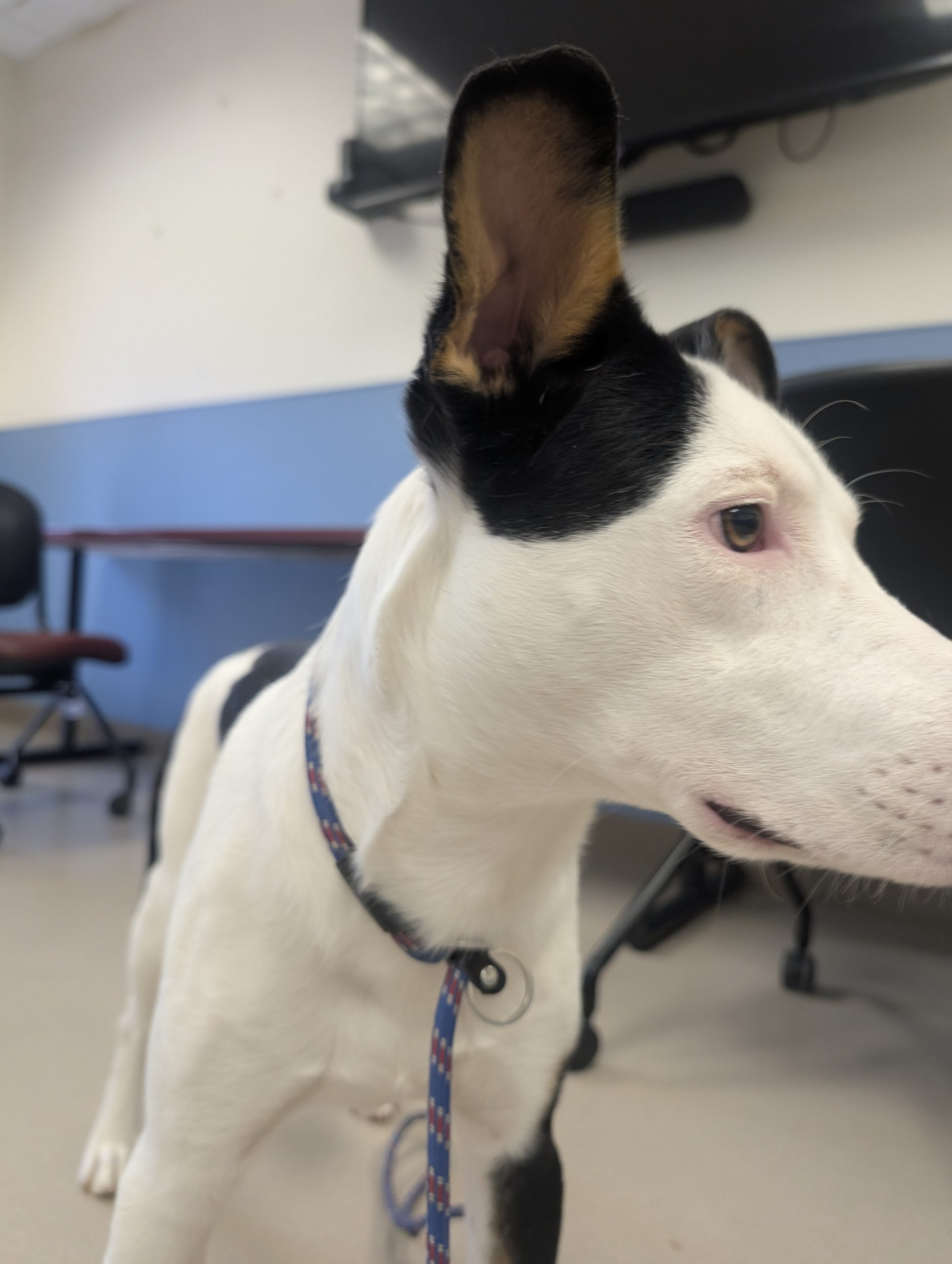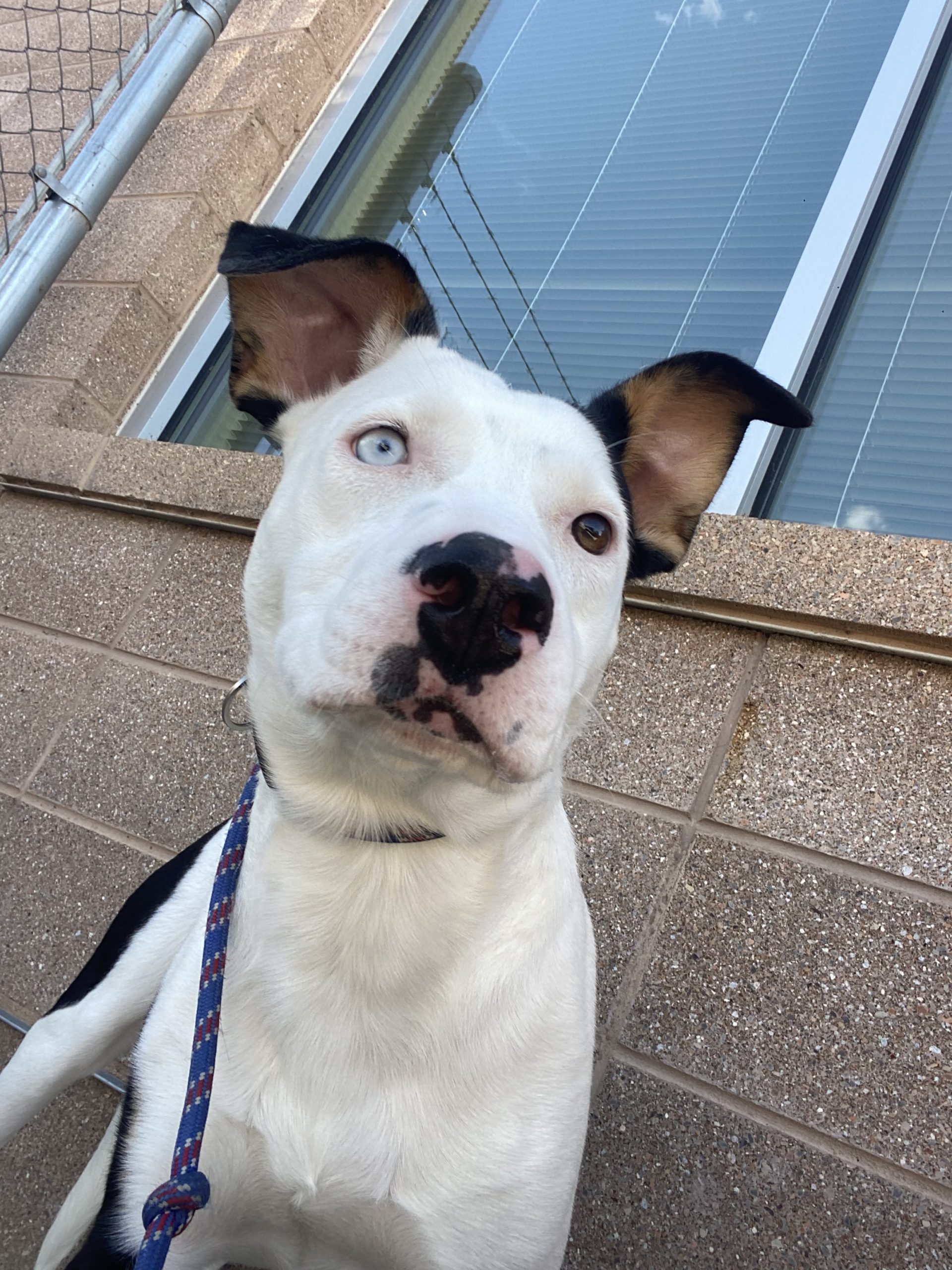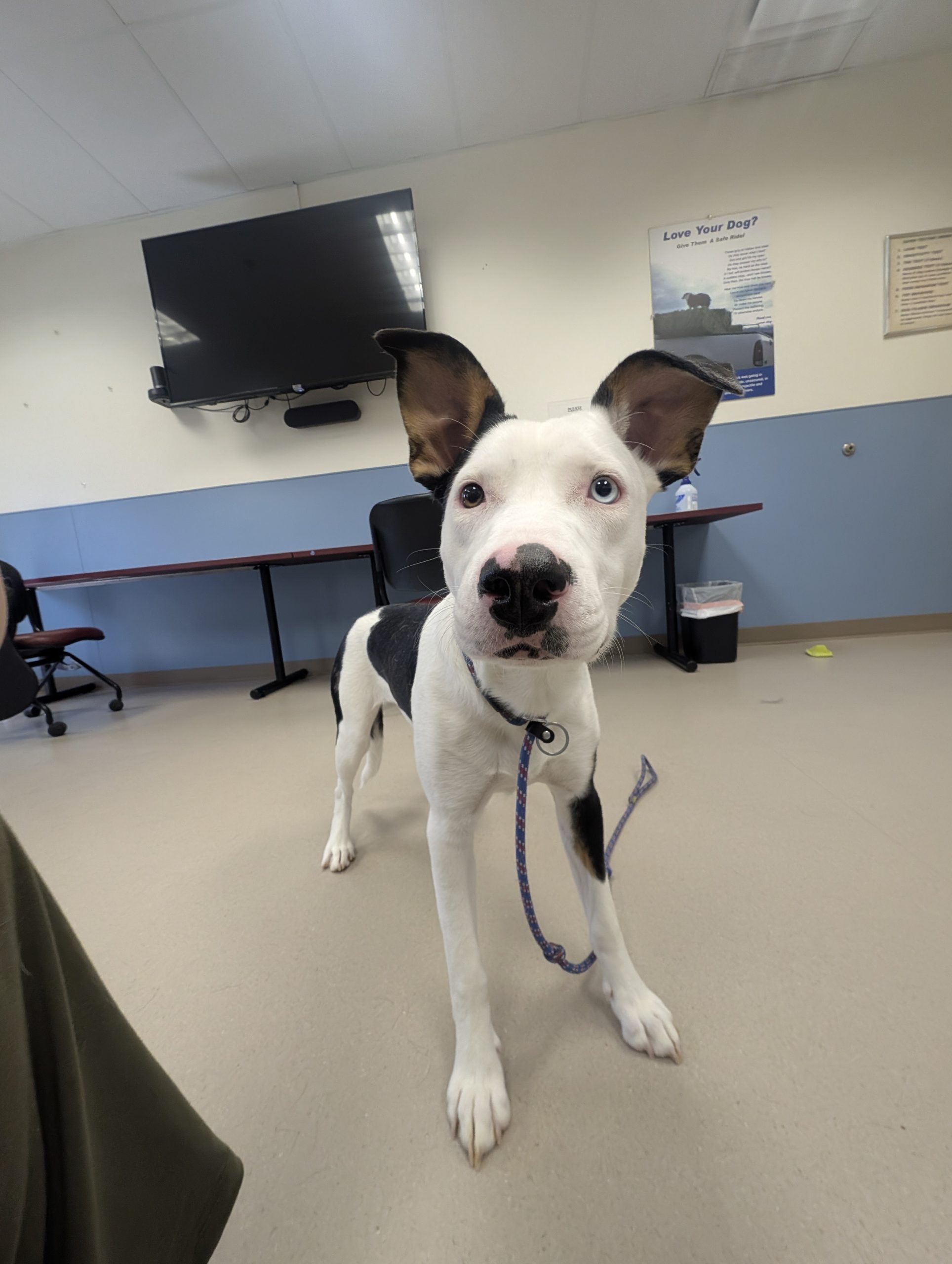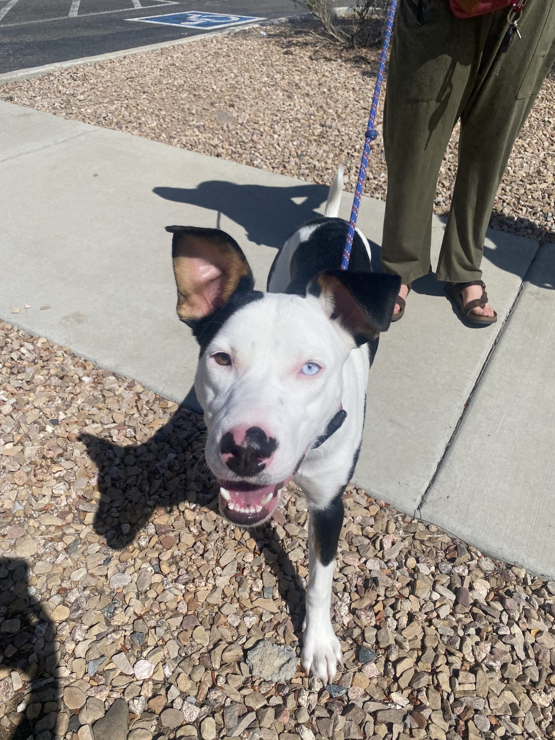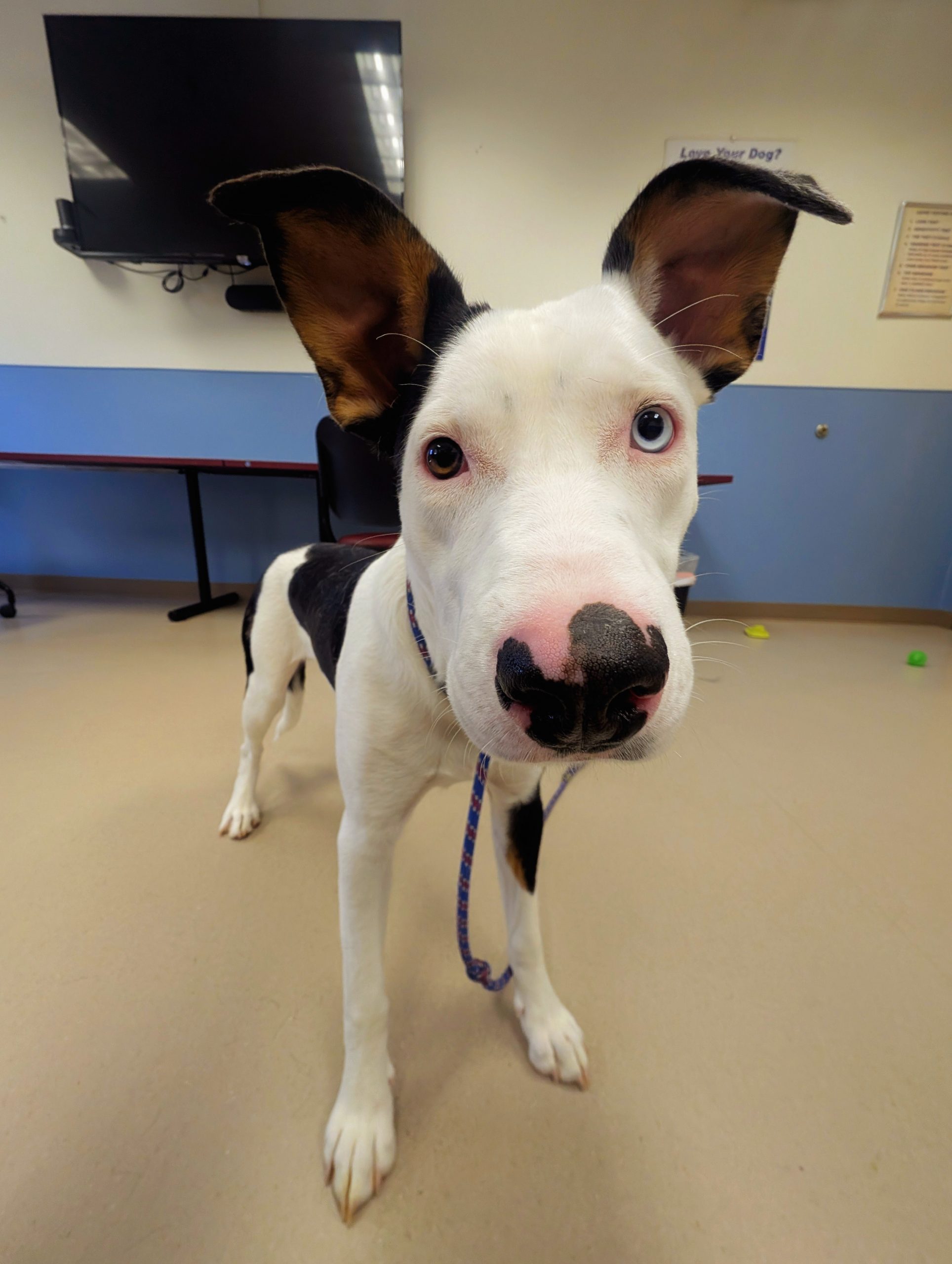 Minka is a sweet older puppy (just turned one!) with a flashy white face and a piercing blue eye! And have you seen those ears?!?! This girl has really come out of her shell since originally coming to the shelter and we can’t wait to see her thrive in her furever home! She is a little shy initially, but warms up FAST! We think she’s going to be a lot more confident when she’s no longer in a scary/loud shelter environment. This sweet girl has long legs and is likely a herding breed- She will need to have an active family! Whether that's hiking in the mountains, or swimming in the river. This girl is going to thrive on adventure!