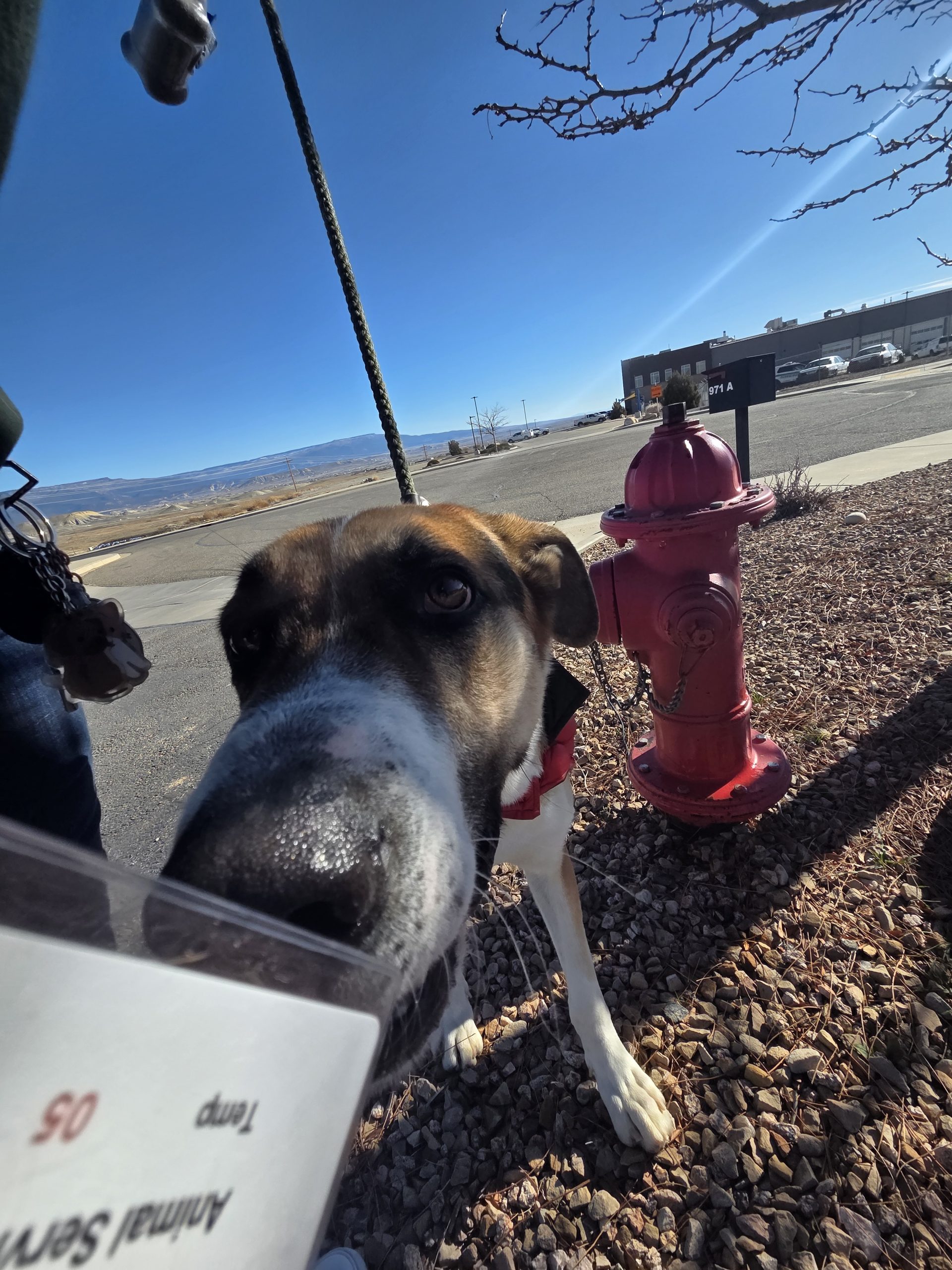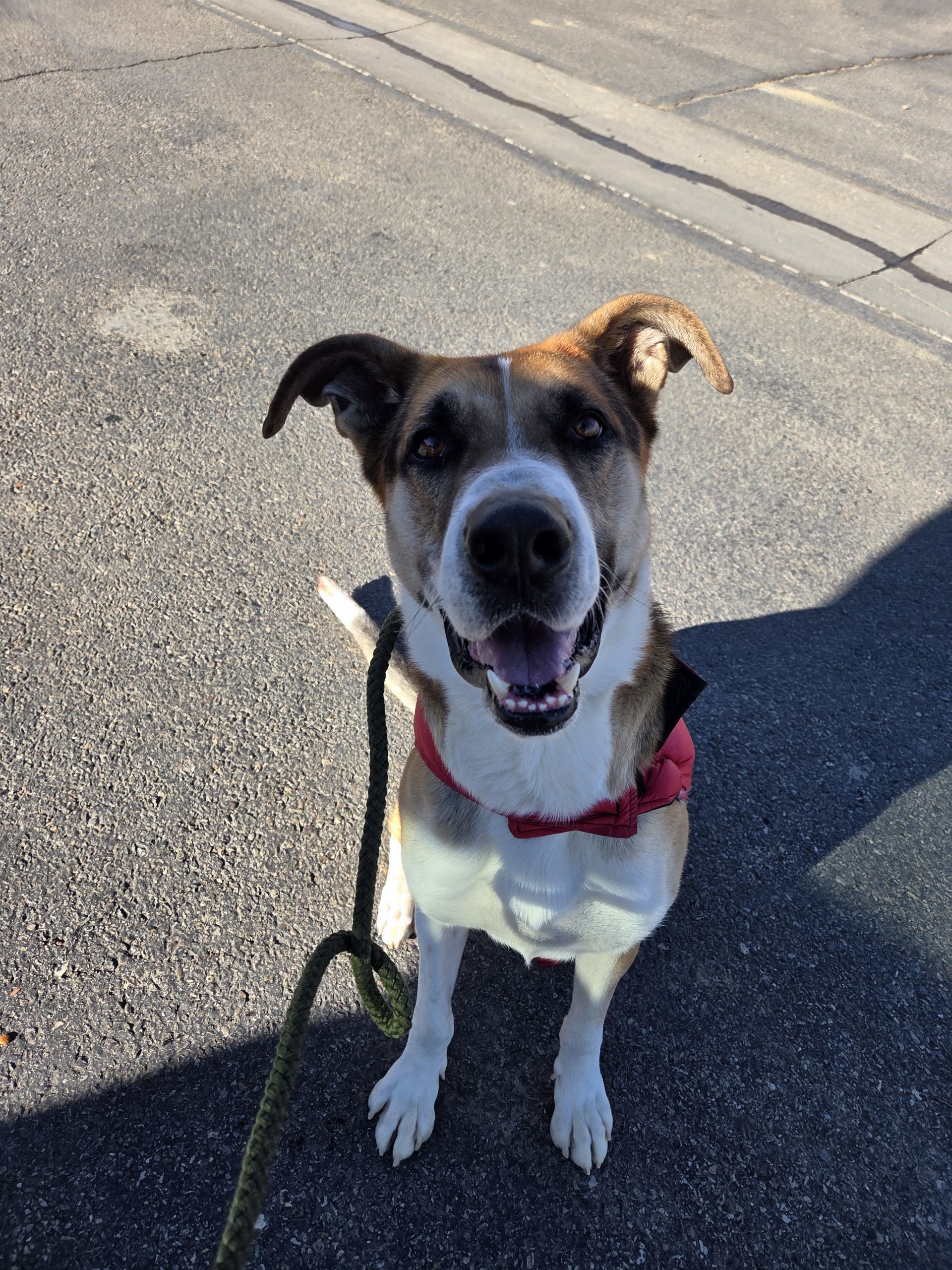 This BIG boy is ready for his next adventure. Meyers, affectionately nicknamed "Scooby Doo" by volunteers and shelter staff, wants to be the pup you take with to solve mysteries. Once Meyers gets his zoomies out, Meyers calms down and becomes a very affectionate and brilliant. He already knows how to sit and has a 75% success rate at the trick "High Five" (Sometimes it's a high 10, but we're getting there!). Due to the fact that Meyers is still learning his leash manners and can pull quite a bit, he is going to need someone who is willing to do some basic training as well as an adopter who can handle a small great-dane sized dog!