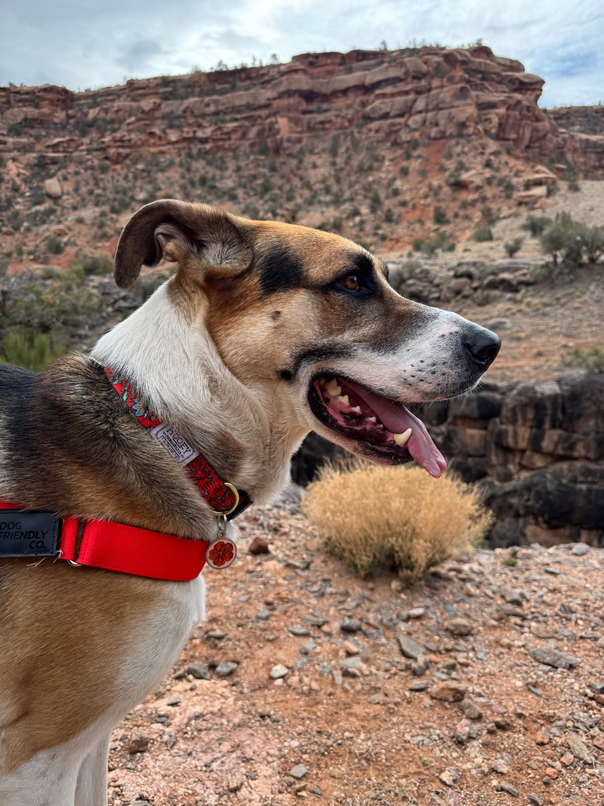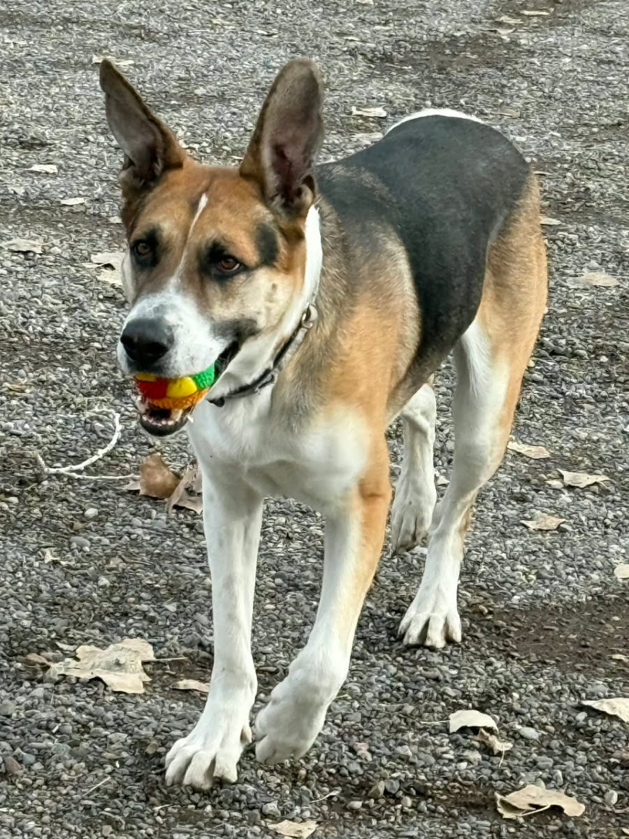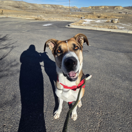 He does pull on leash, but does better with a harness. He is treat-motivated and ready to learn further skills. He knows sit and high-five. He would love an adopter who is ready to give him as much love as he wants to give away!!