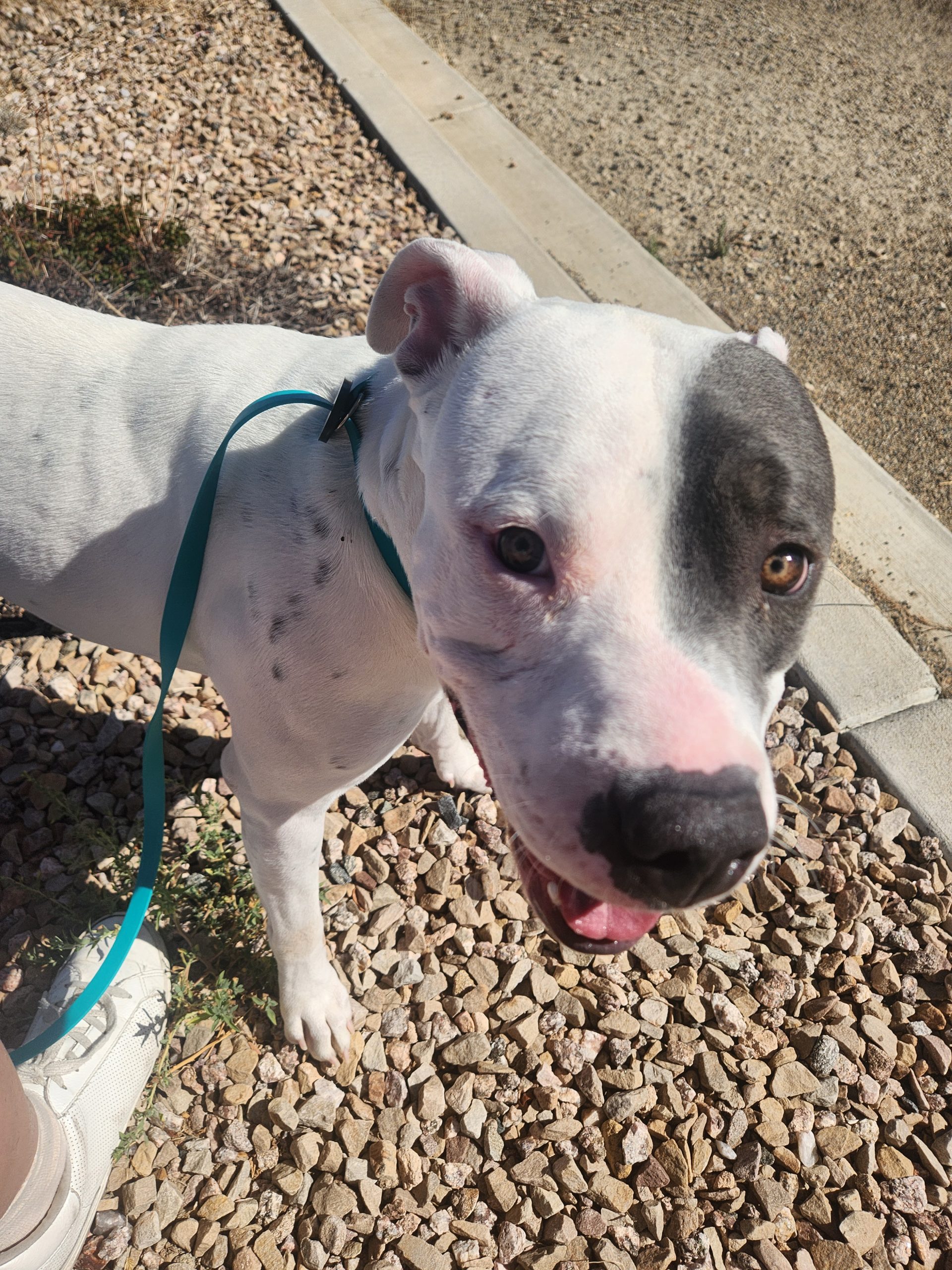 Panda, a lot like her sister Olivia, is continuously coming out of her shell! She would love a family who is patient with her and willing to help build her confidence. However, we think once Panda (and Olivia) are out of a shelter environment, they will start to THRIVE and become a lot more confident with their furever family! Panda walks very well on a leash and is such a love bug! She is working on learning new skills such as "sit" and "down." She would thrive in a quieter home with older or dog-savvy kids who are willing to respect her boundaries during her nervous moments.