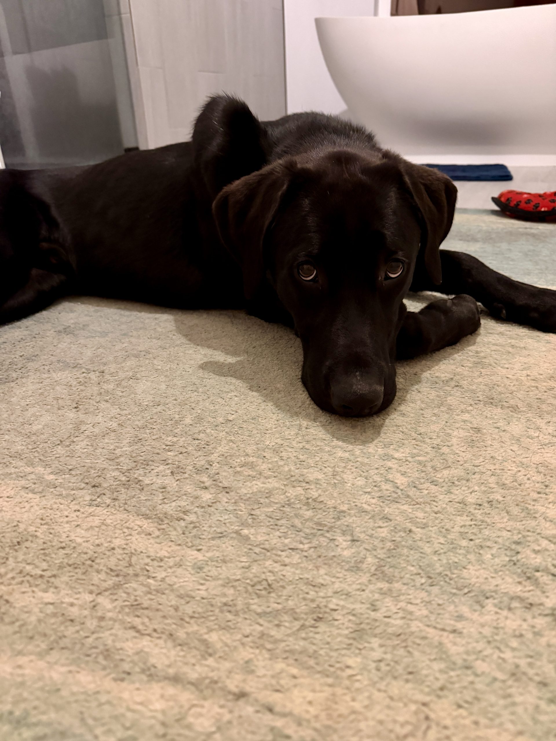 This handsome guy is a lab lover’s dream! He is extremely affectionate, loves all people, and loves other dogs. His favorite things in life are belly rubs, butt scratches, playing fetch, playing with toys/balls, and playing in the water. He has puppy energy and will thrive in a home that can take him for walks/hikes, play fetch, and continue his training. He loves to play with other dogs, but sometimes does not know his own size/power yet - he is a puppy learning what to do with his big paws! He loves to follow his humans around the house and is doing great with basic training. He knows sit, down, stay, come, and is working on loose leash walking. Due to his size and still being a puppy, we think he would do best in a home with older kids (or no kids). This guy will make you fall in love with him!! Apply to adopt Rolo today!