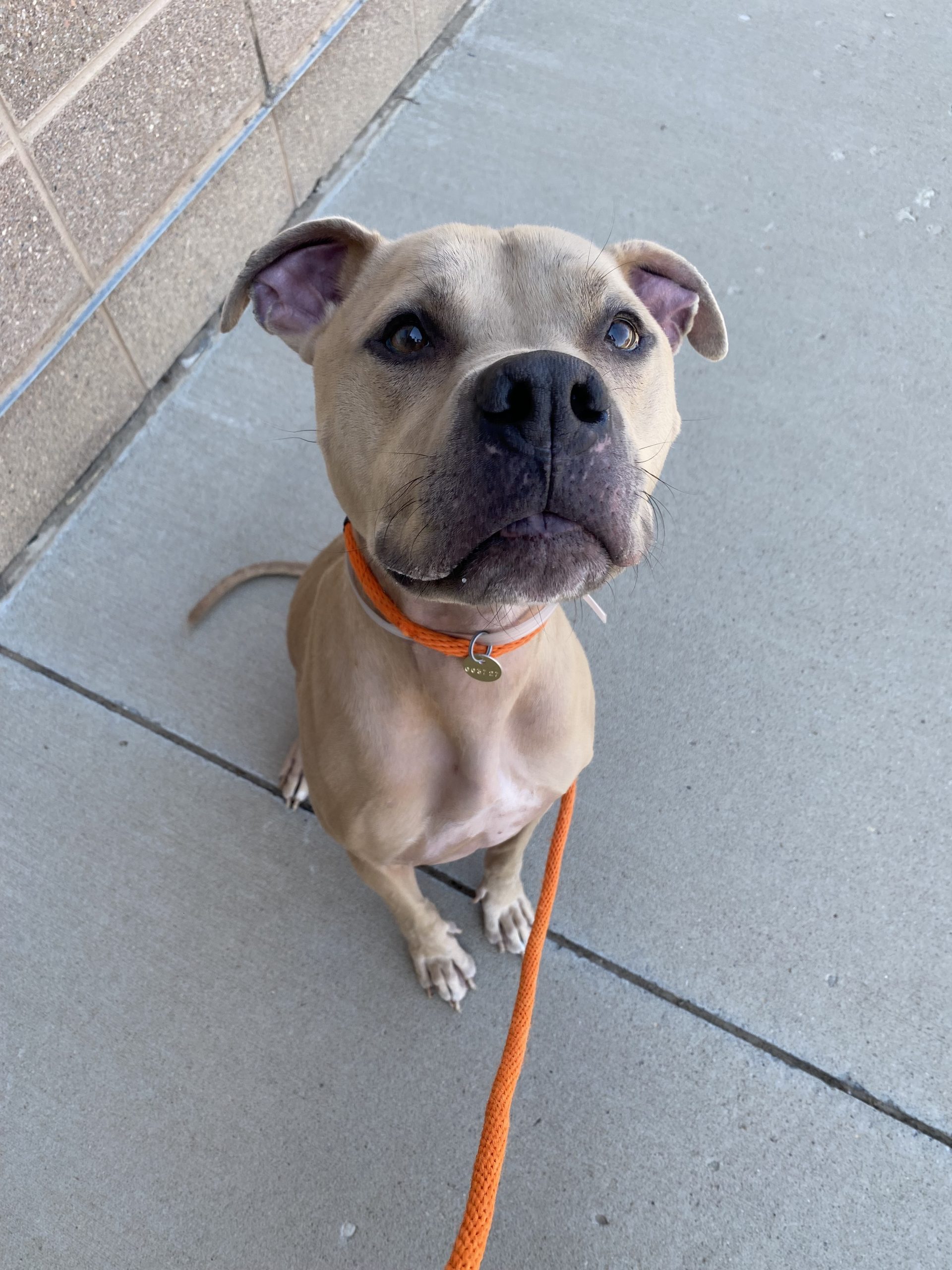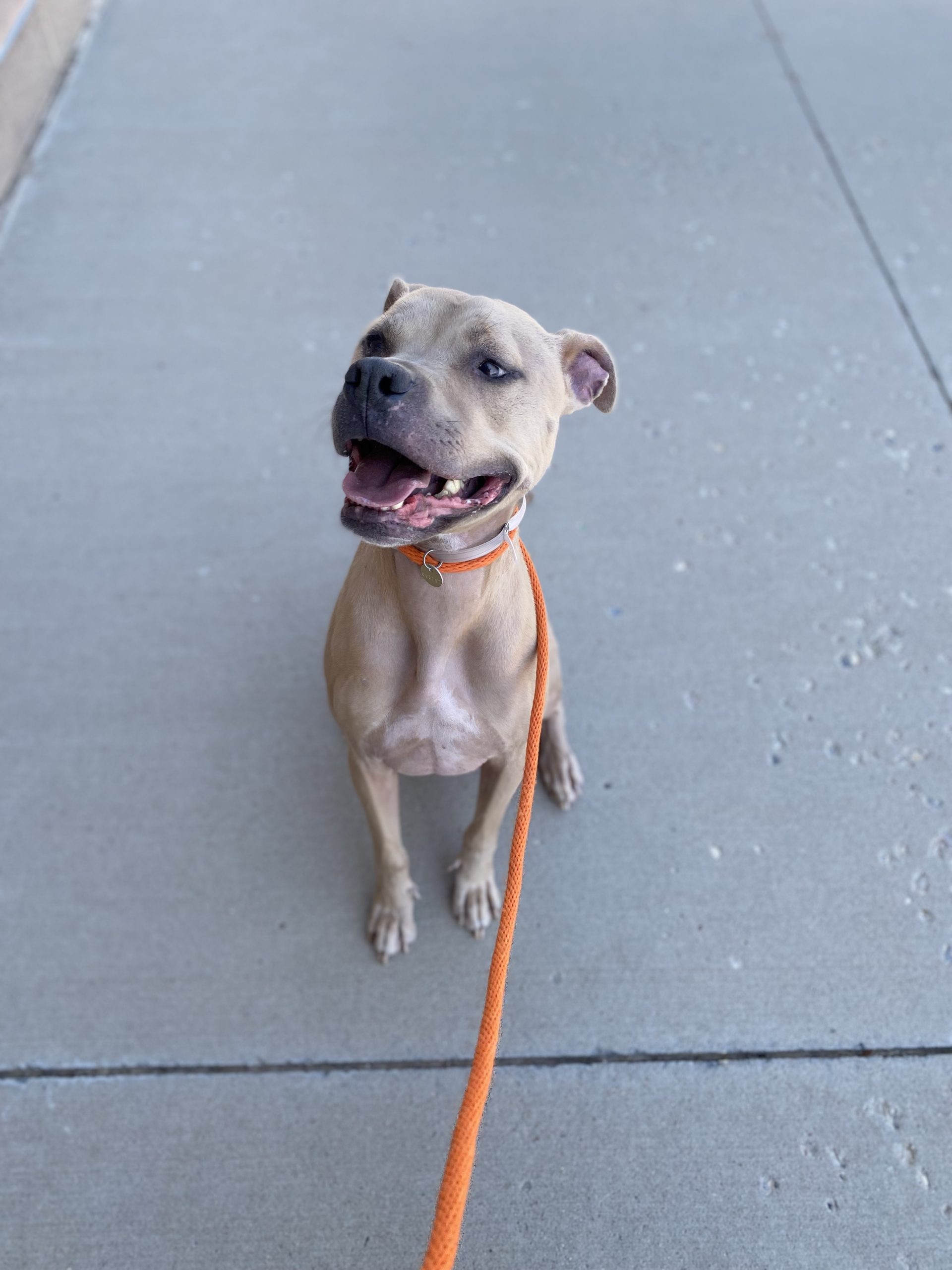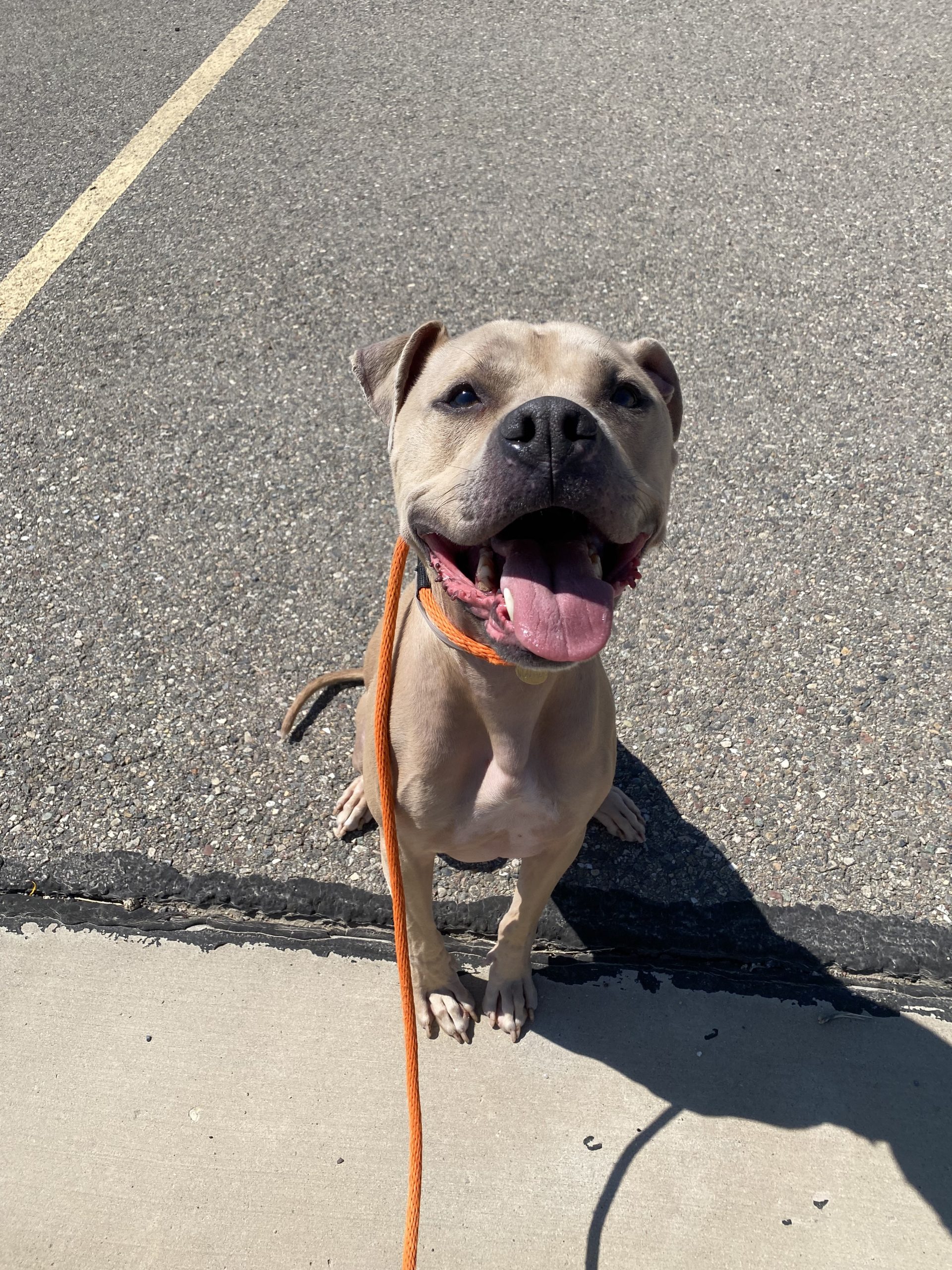 Shivo (Silver) is a gorgeous almost rose gold colored pit mix whose coat shines in the sun! This smiley boy has the classic characteristics of a pitty - affectionate, expressive and fun-loving and wiggly! He walks very well on the leash and knows basic commands. Unfortunately, Shivo's (Silver) human has been in the hospital long term, so he is now looking for a new furever home with a very special adopter. He’s in a great place to find his forever family and will make an amazing companion!
