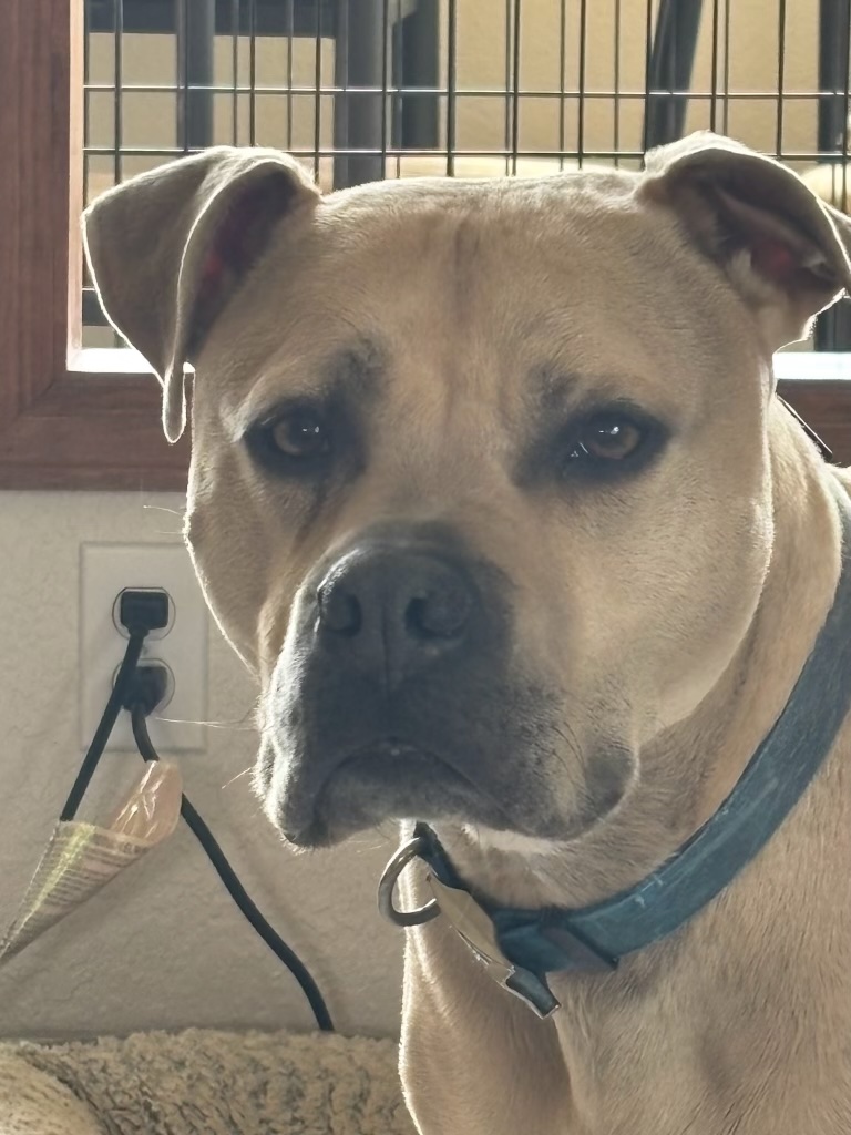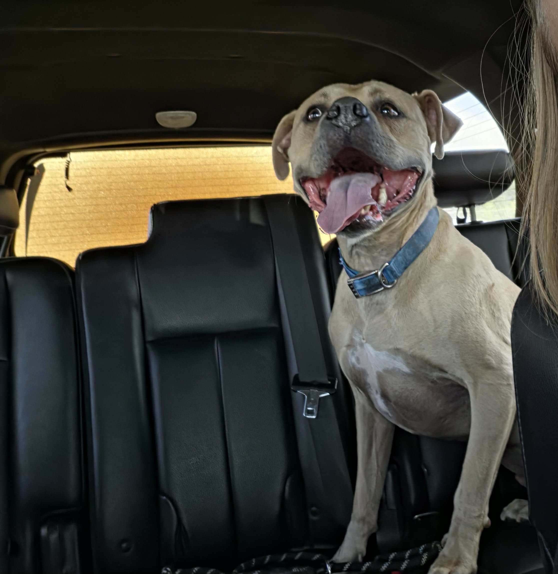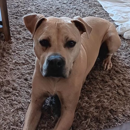 Toby is a gorgeous almost rose gold colored boxer/pittie mix whose coat shines in the sun! This smiley boy is affectionate, expressive, fun-loving and wiggly! Everyone who spends time with him falls in love with his personality. He walks very well on the leash and knows basic commands. His favorite thing is to spend time with his human getting pets and affection.