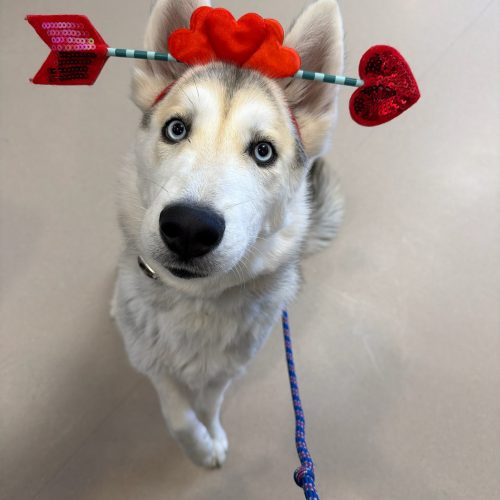 Suki is a happy-go-lucky puppy who will fit into any family seamlessly as long as they love to adventure with her! This sweet girl is very playful and likes to play with cats a little too rough so she will do best in a home with no cats. She would love to have another dog friend especially one that loves to play and run!