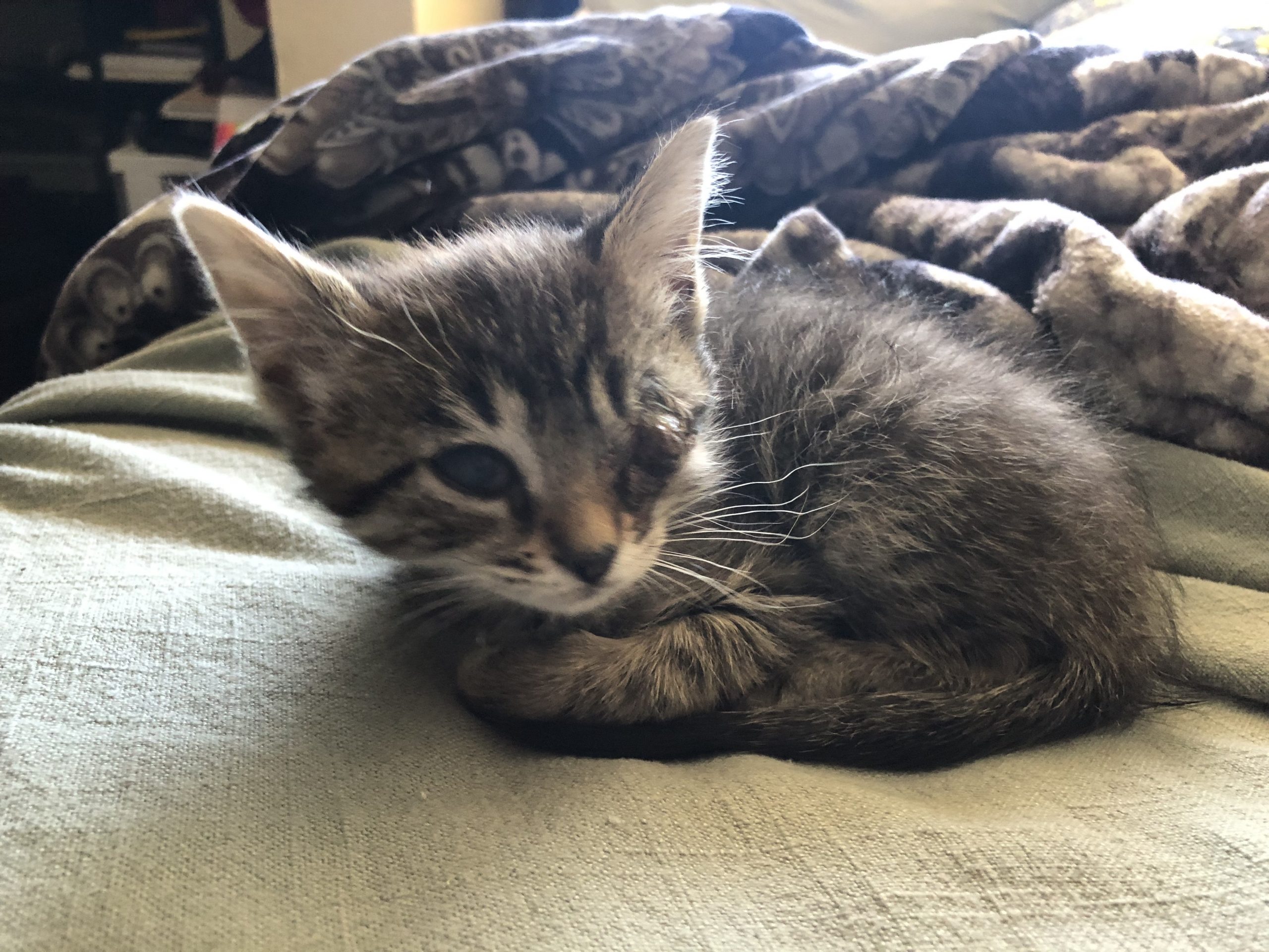 Cherry came into GRHS with a largely infected eye socket, and a few other eye related issues. He has since had his bad eye removed and is doing well! He surviving eye has a bit of cloudiness to it but that doesn't slow him down at all! He can see well and has no issues living life to the fullest!