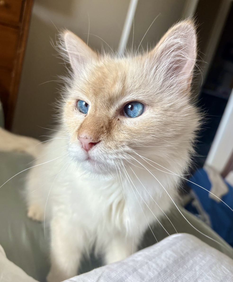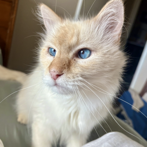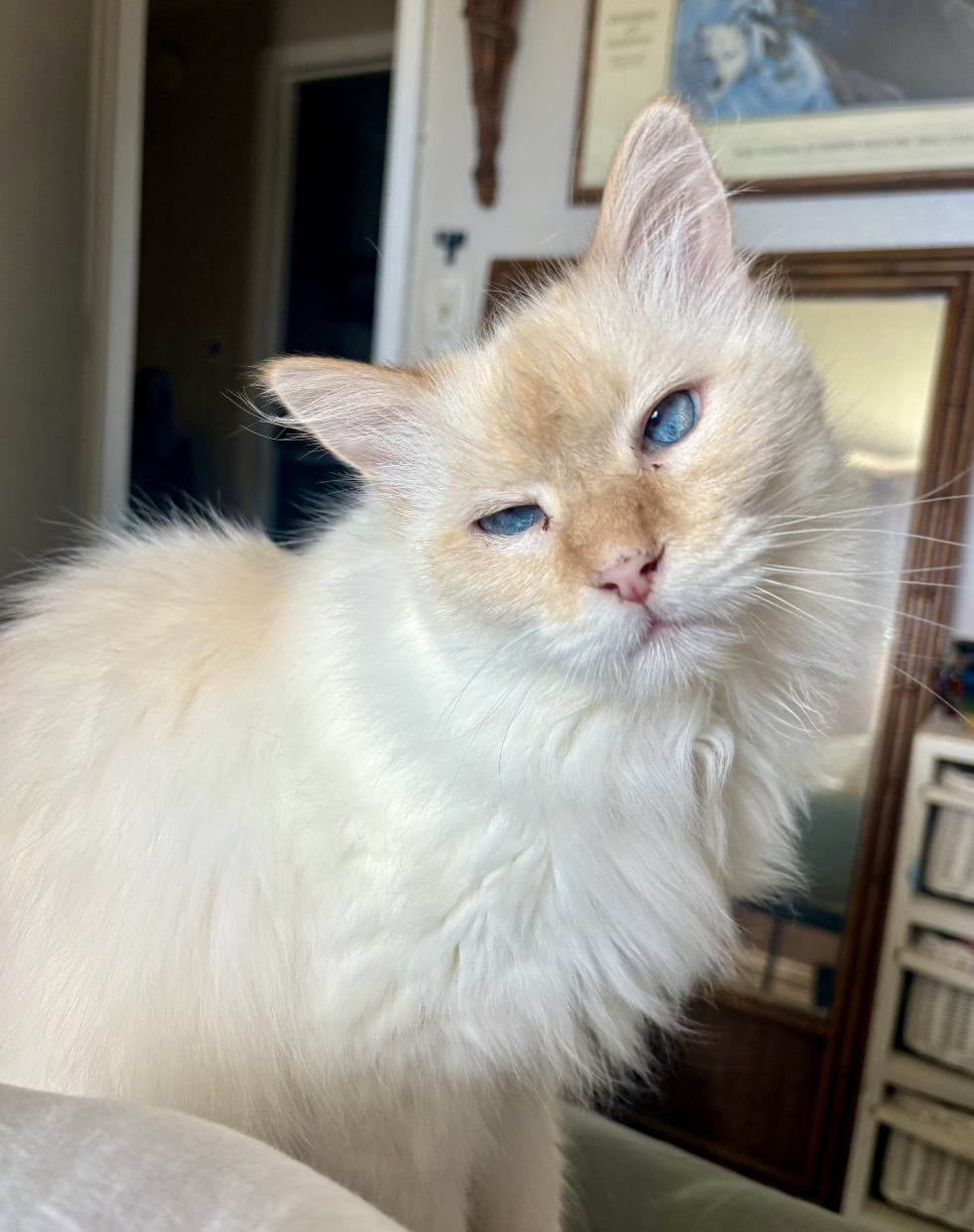 Meet Donny! This beautiful long haired Flame Point Siamese is as unique as he is beautiful! Donny recently overcame a severe ear infection, which has left him with an adorable (and harmless) habitual head tilt that only adds to his charm! Don’t let that fool you though- Donny is as sweet as they come. He adores pets, cuddles, and love, but he’s also perfectly content spending time on his own. Independent and affectionate, Donny is ready to brighten the life of someone special who will love him just the way he is!