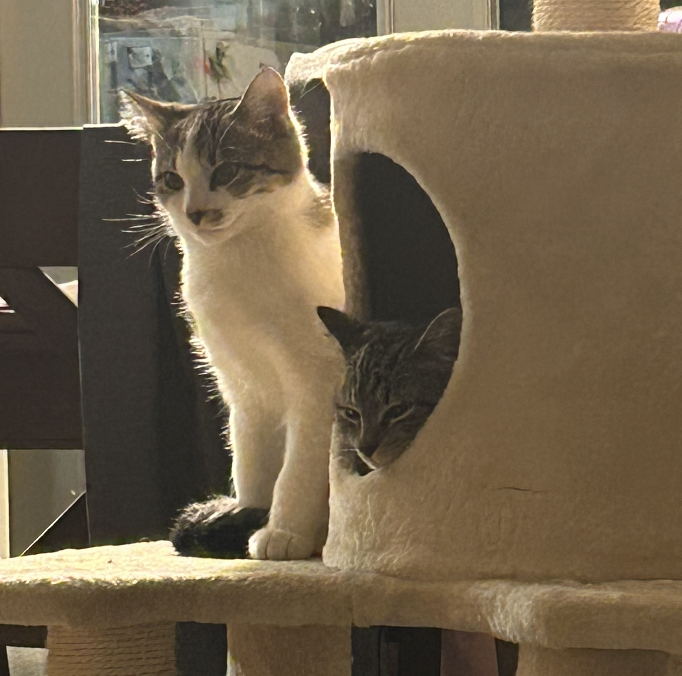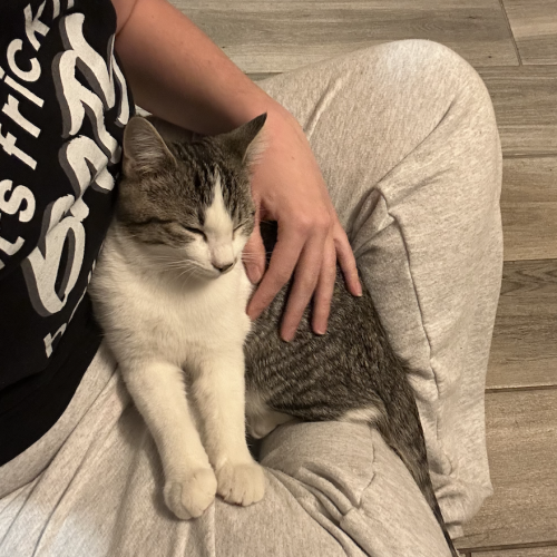 Frankie and Francis are adorable and loving! They were rescued and brought inside to a GRHS foster home after being tiny kittens trying to survive outside on their own. They are working on getting used to people but are loving the treats, playtime and snuggles indoor life comes with! They are making huge progress everyday and are now becoming snuggly loving kittens!