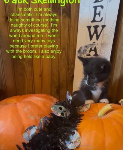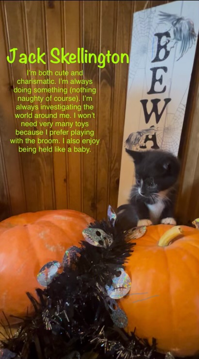 We're happy to tell you that Jack Skellington has a new furever home. Please visit our Available Cats Page to see the cats currently available.