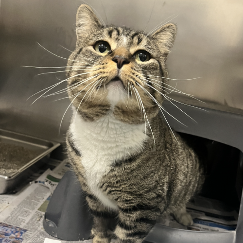 Jelly Roll is a big bundle of love and snuggles! He loves scratches and wants to hang out with his people and follow them all around the house. He’s quirky in all the best ways, and even does well with calm dogs!