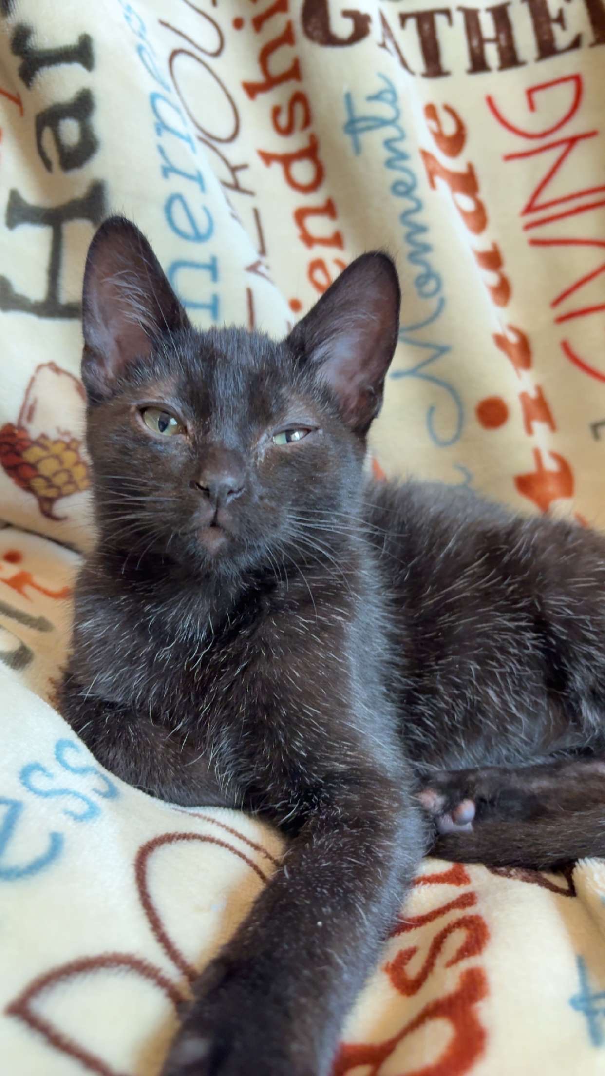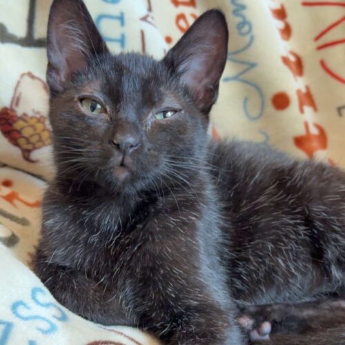 Jeremiah the Bullfrog is the sweetest little guy! He enjoys cuddle time with his foster family and chasing toys with his foster siblings. Jeremiah would make a great addition to any home! He is a playful, cuddly, and active kitten.
