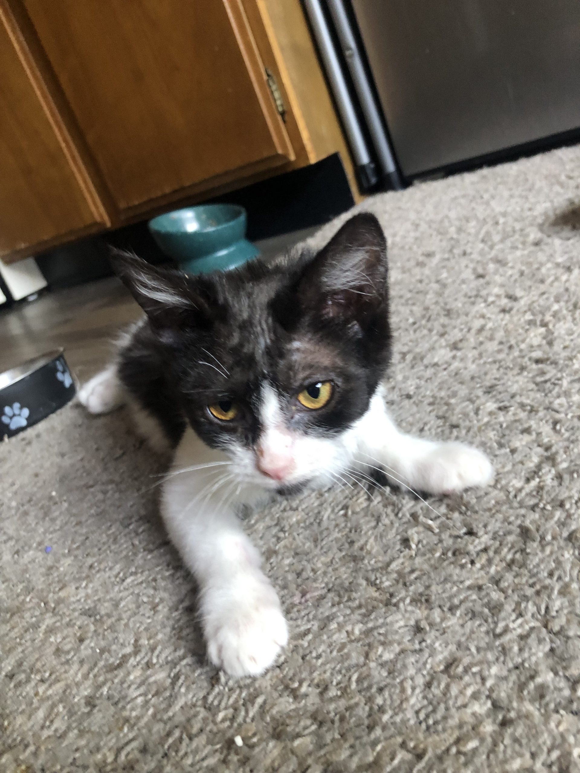 Maggie came to GRHS from GJPD in critical condition. She had a rough upper respiratory infection as well as a puncture hole in her ear that maggots had been growing in. After help from our vet partner and a few days of rest she has recovered well! She is a very happy loving girl who is obsessed with belly rubs! She is very low-key and desires to live a cozy life away from maggots forever!