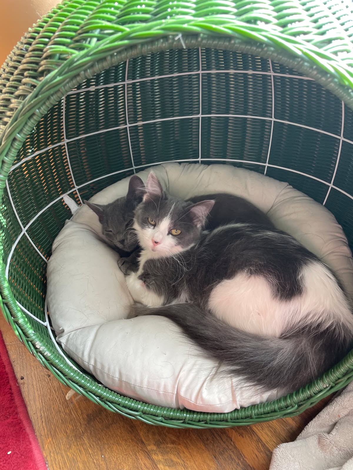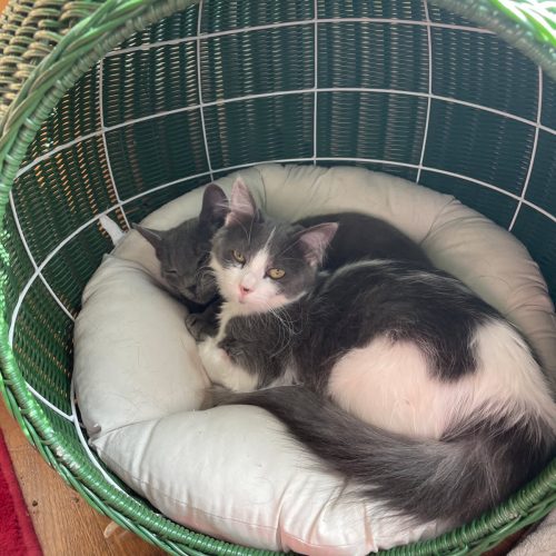 Pepper and Mothman have grown to love eachother very much and would like to go to their new home together. They are sweet spunky and curious older kittens.