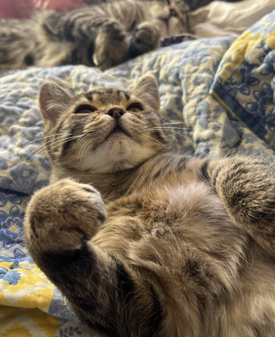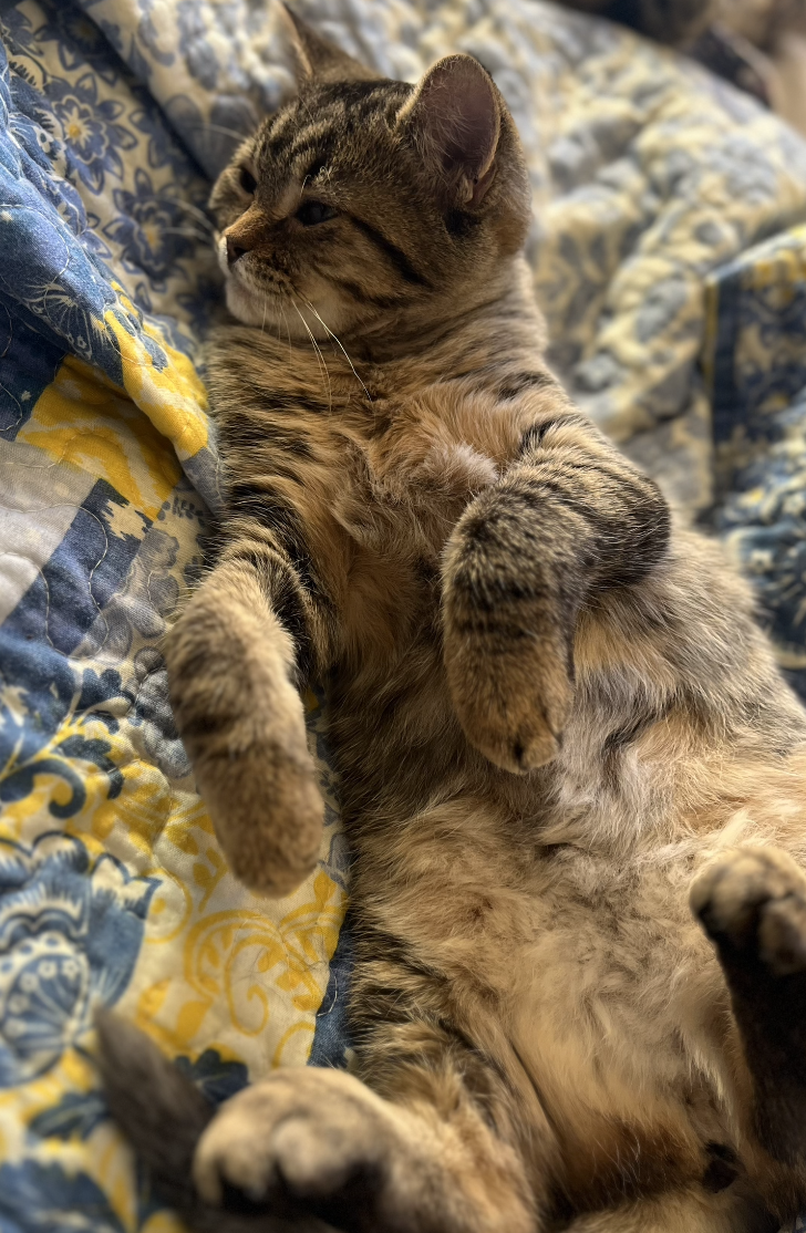 Pippi Longstocking is just like the real Pippi independent, courageous, silly, and loves to play! She came to GRHS as small malnourished kitten alone with parasites. She is now a silly little girl who loves to snuggle and play! She has grown to become quite short and stocky like a little pug! She has a funny little squished face that can be so expressive! Adopt her and never be bored again!