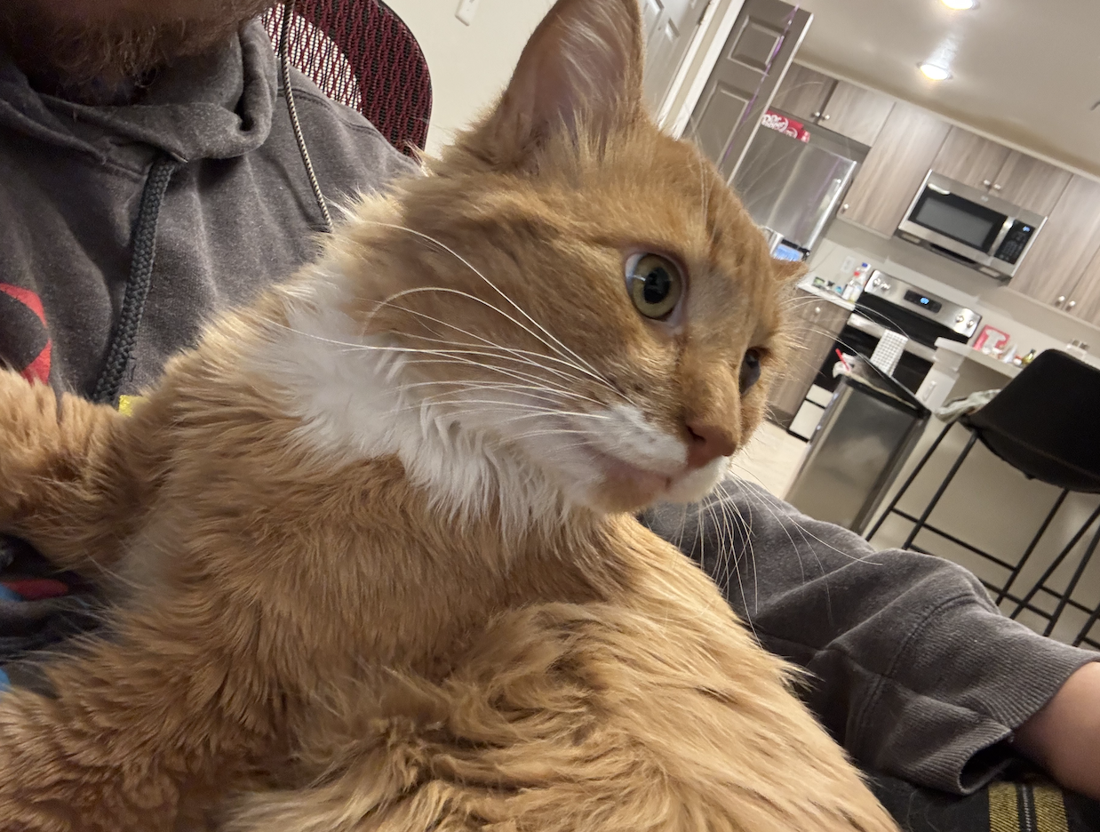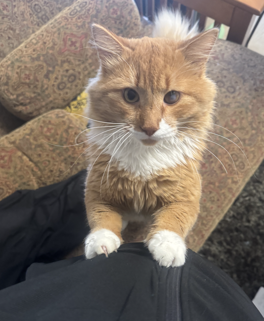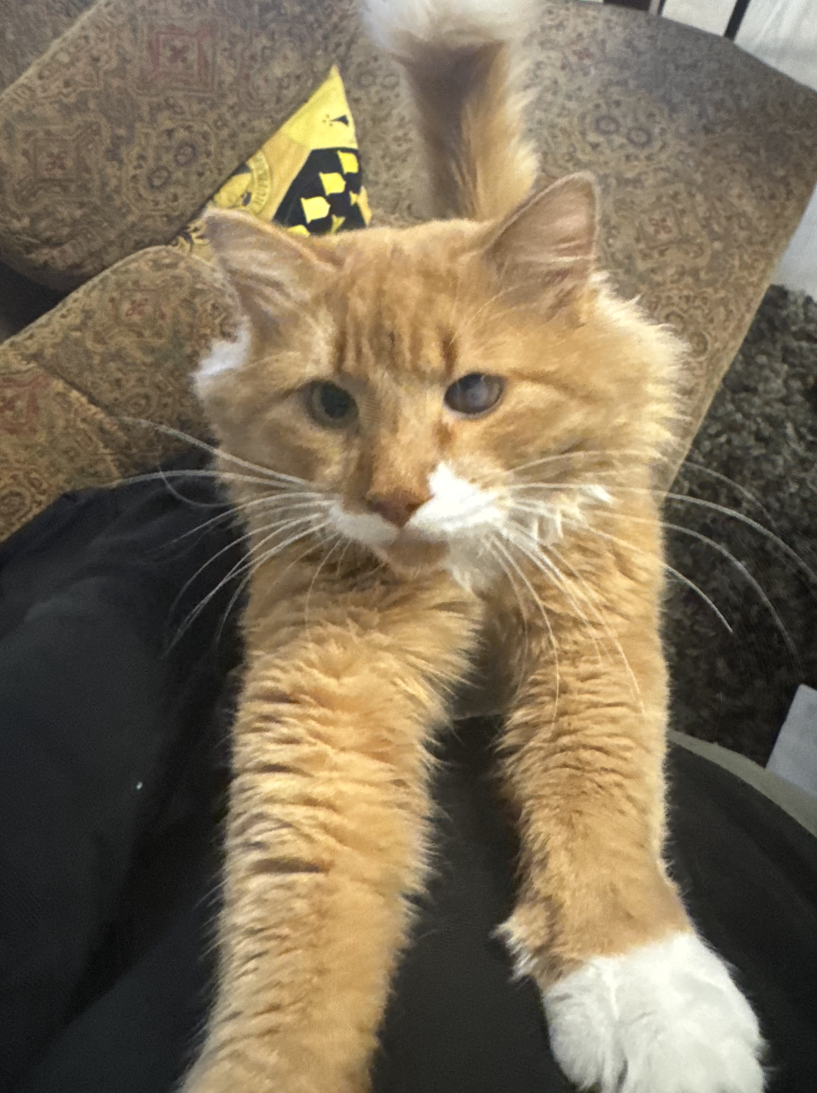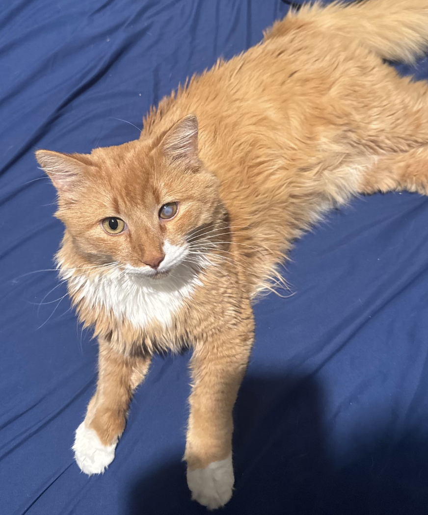 Whiskey is a lovable goofball who loves snuggles and love! He loves to be where ever you are! Whiskey is currently recovering from an ulcer on his eye and working towards clear sight.